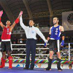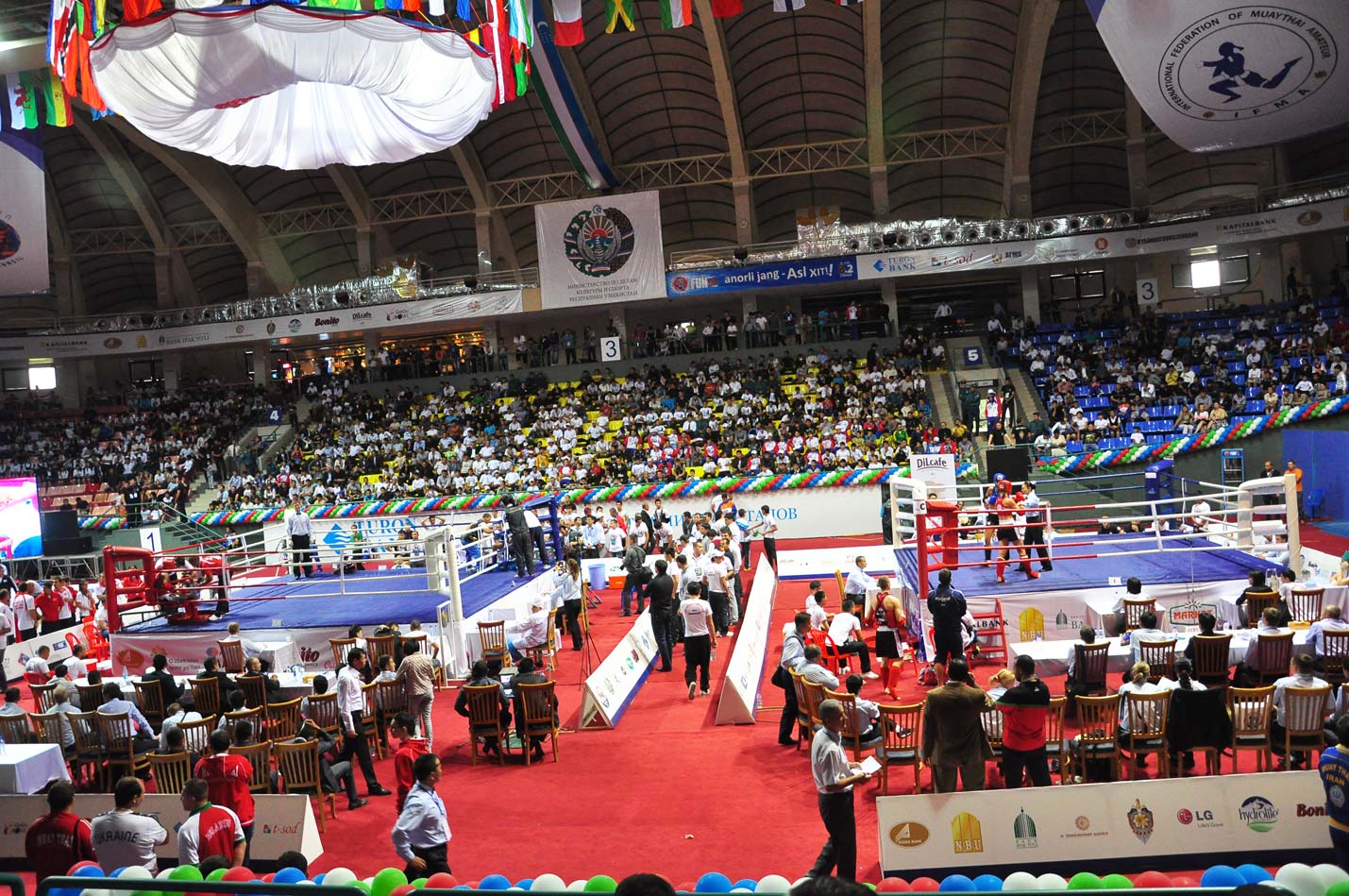 Day 2 of the competition proves to be filled with excitement and action over all 3 rings. Atmosphere in the stadium was electrifying with the cheers from local muaythai enthusiasts and fans. The roof of the Sporting Palace was on fire when Home boy Kahhorov Mavlonbek took the victory over Turkey’s Ozturk Yilmaz in the 67KG A division bout. The crowd’s decibel level was a true testament to the Uzbeki’s love for muaythai.