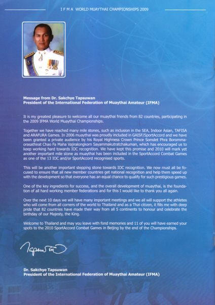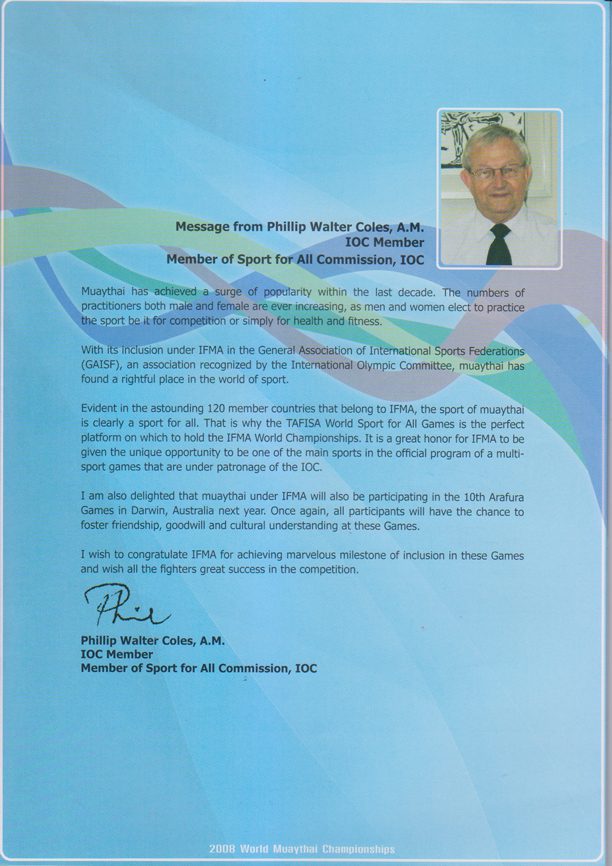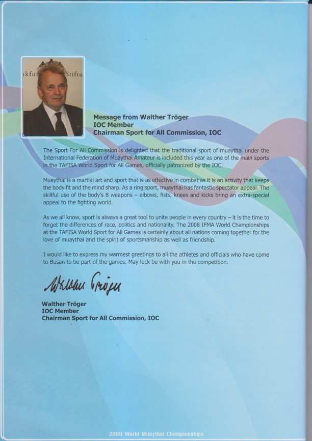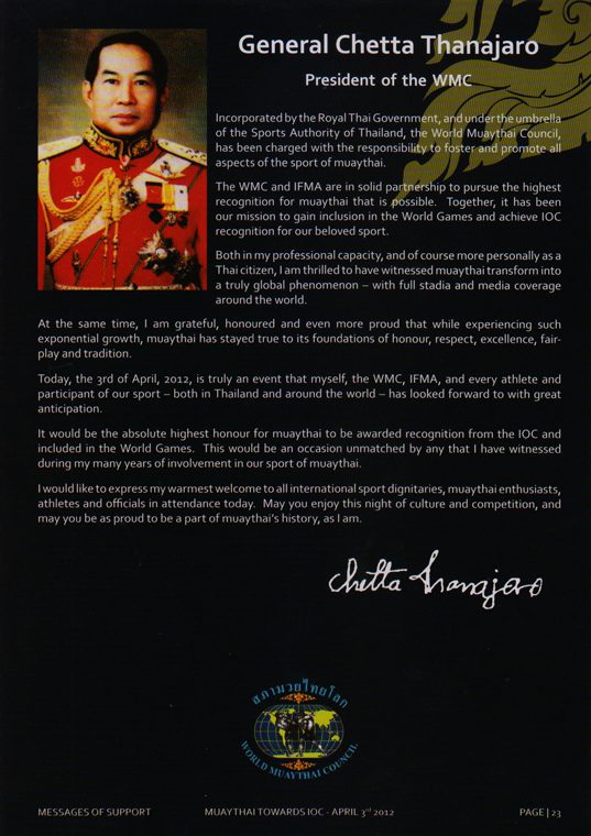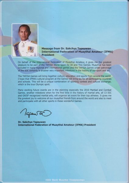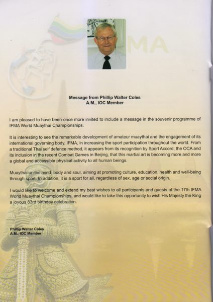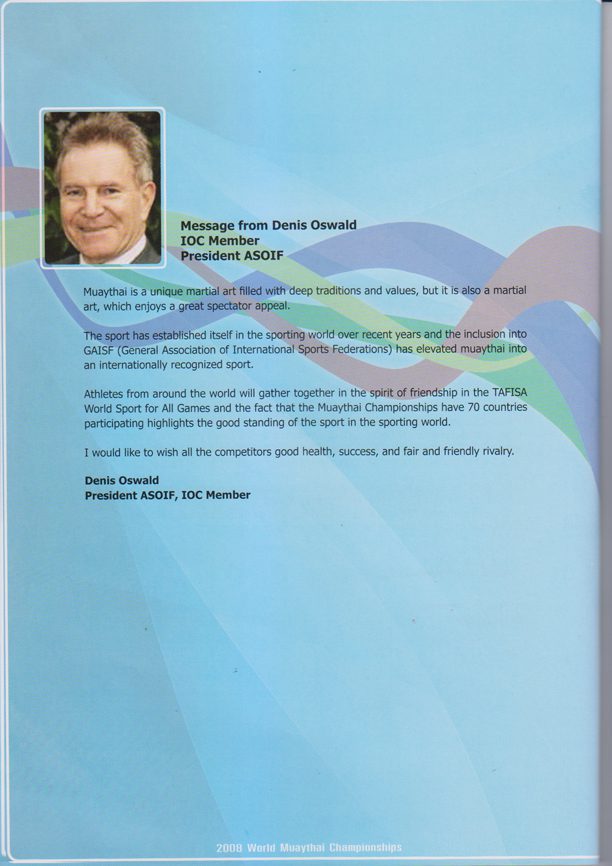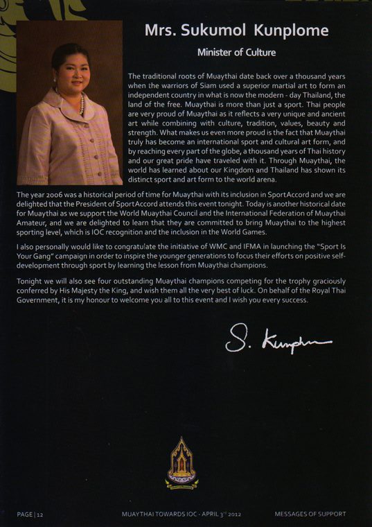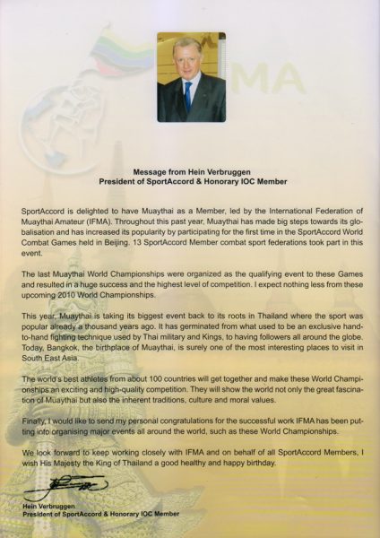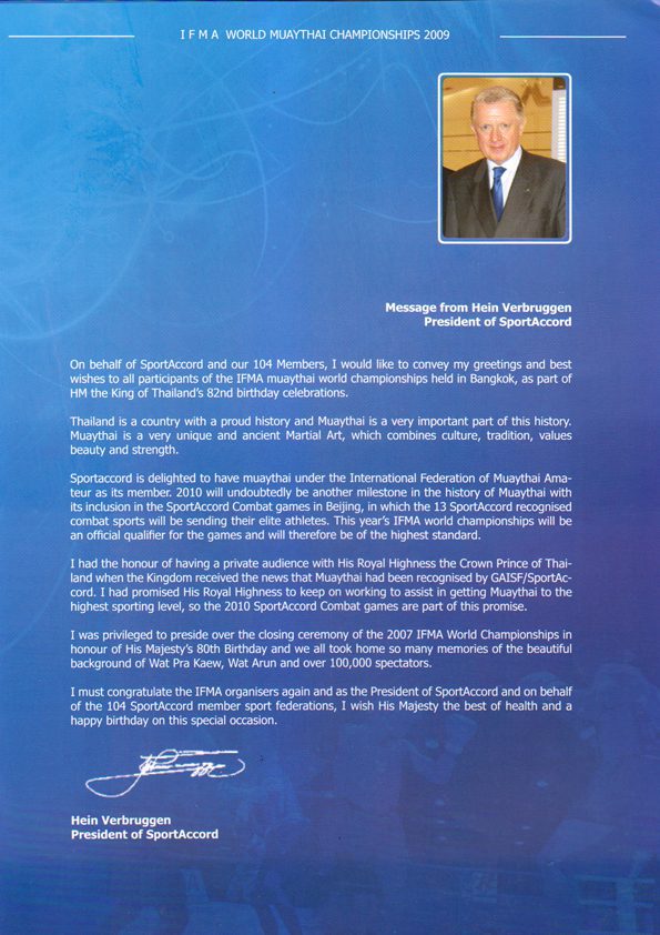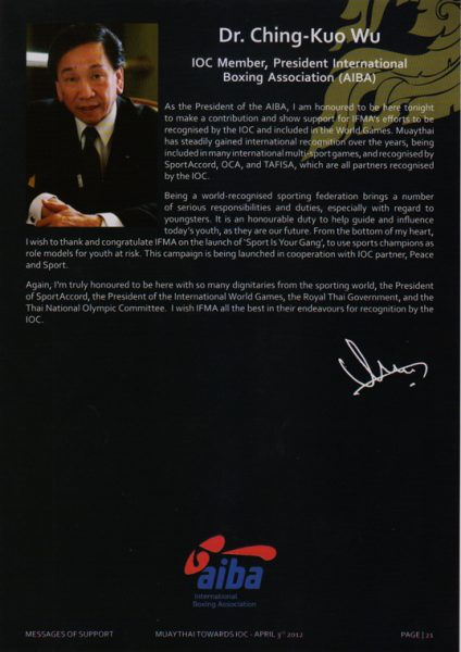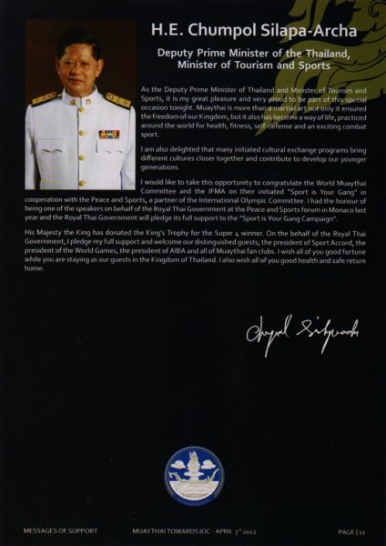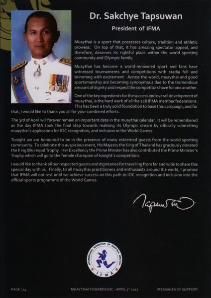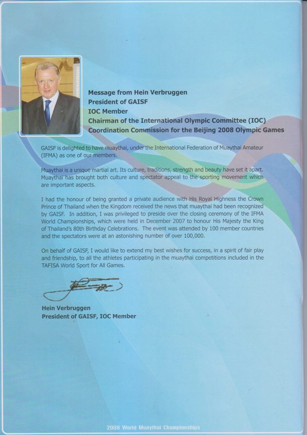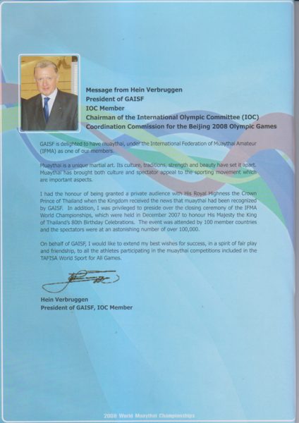 Souvenir Messages – Muaythai Towards IOC & Olympic Recognition 2012