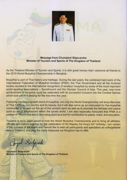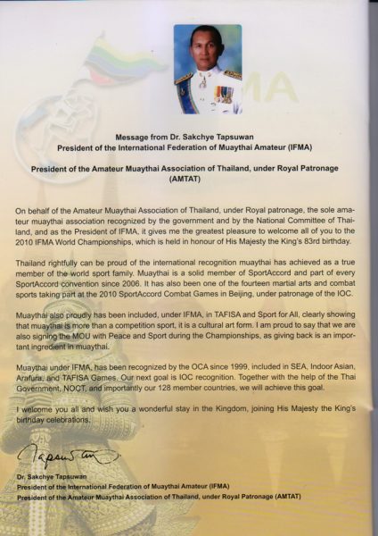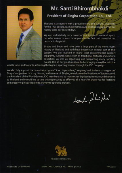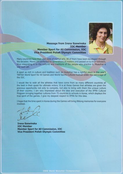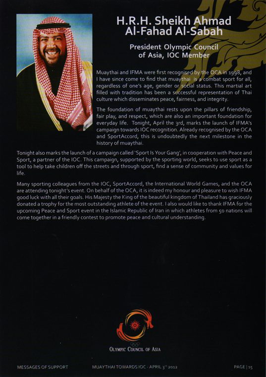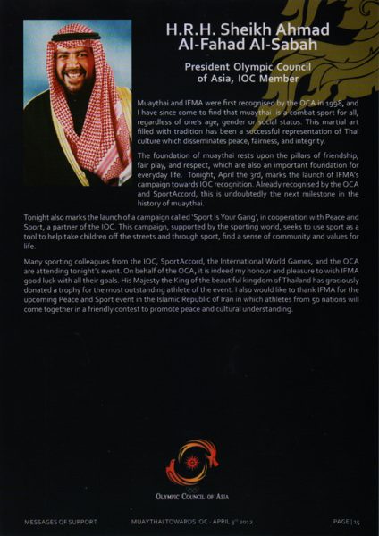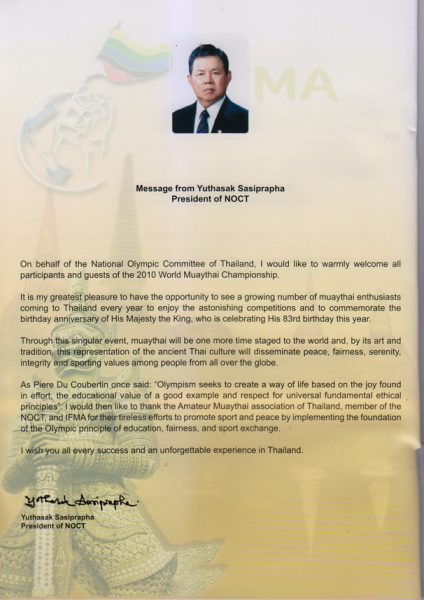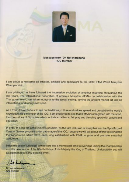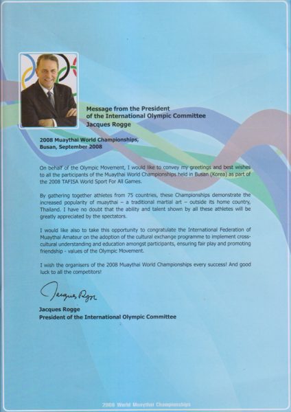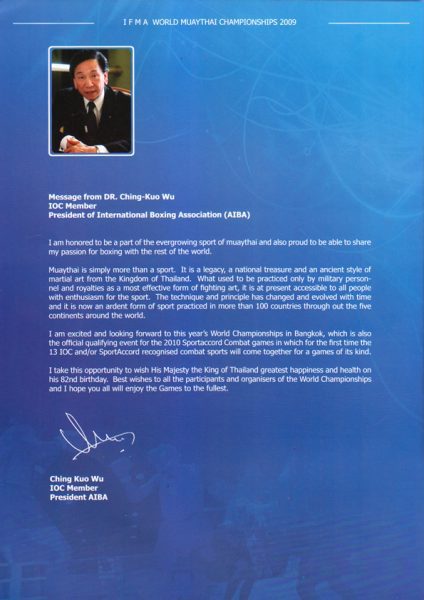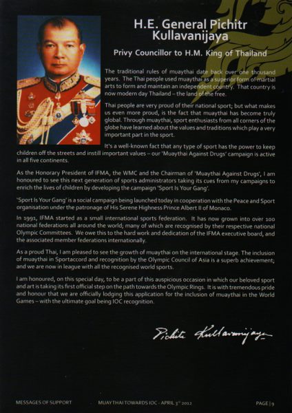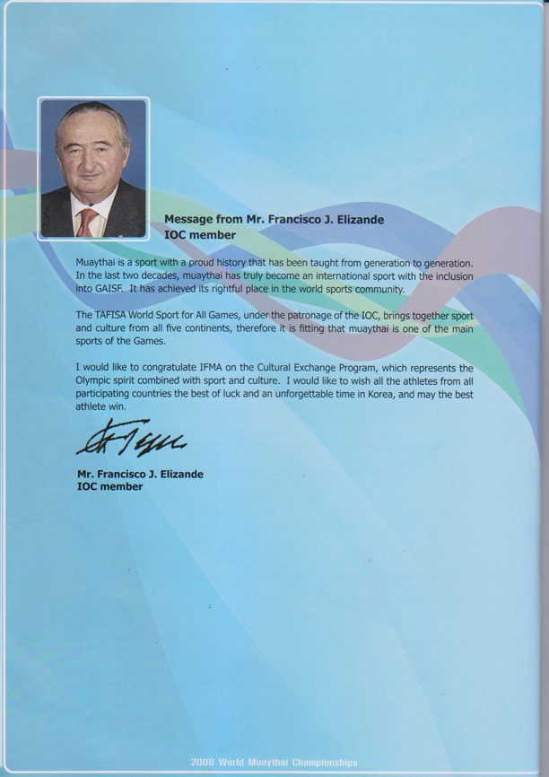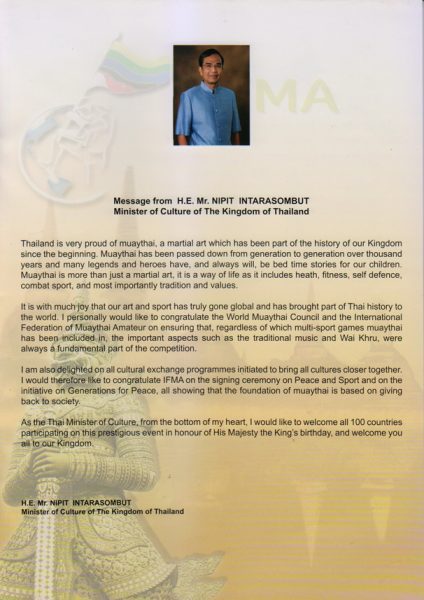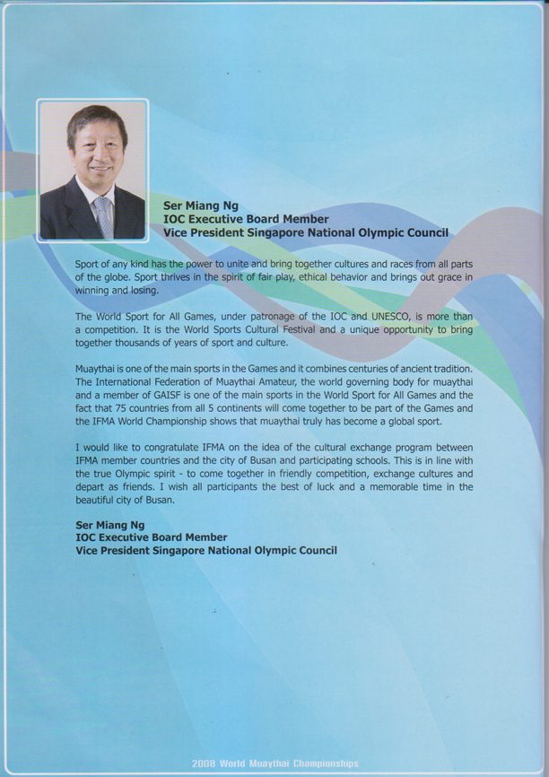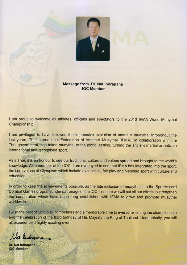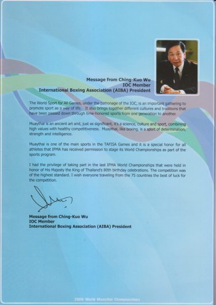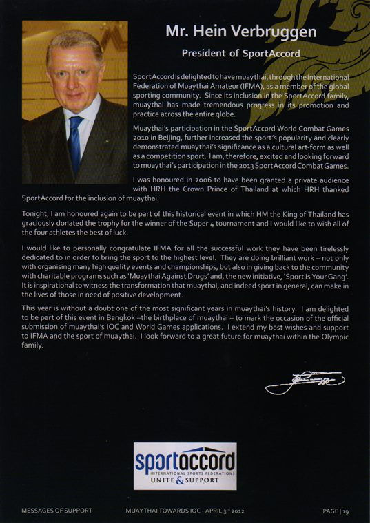 Souvenir Messages – Muaythai Towards IOC & Olympic Recognition 2012