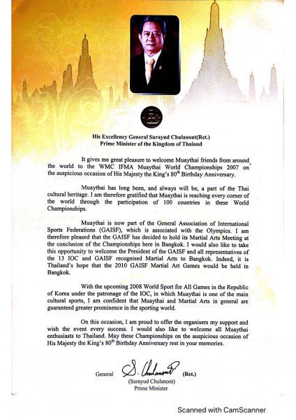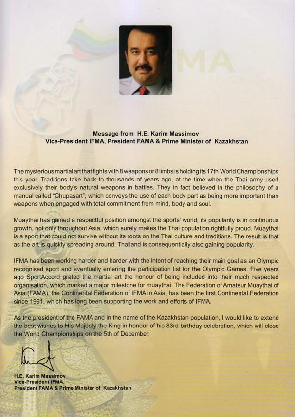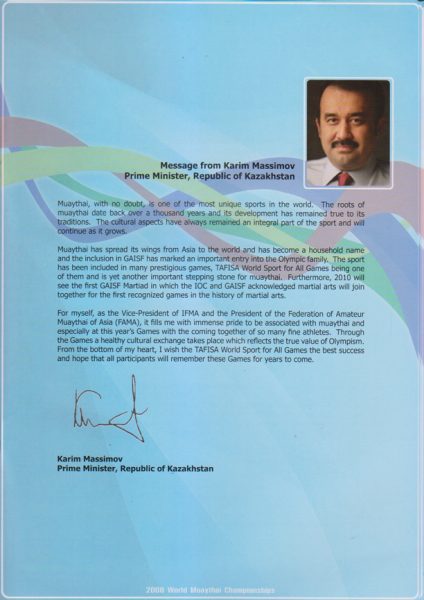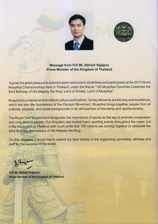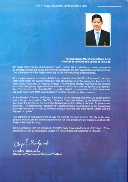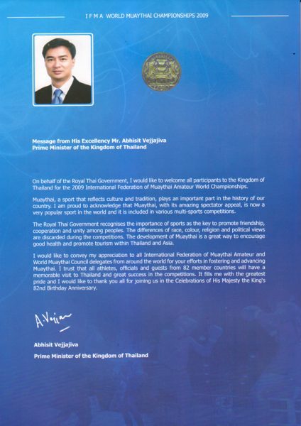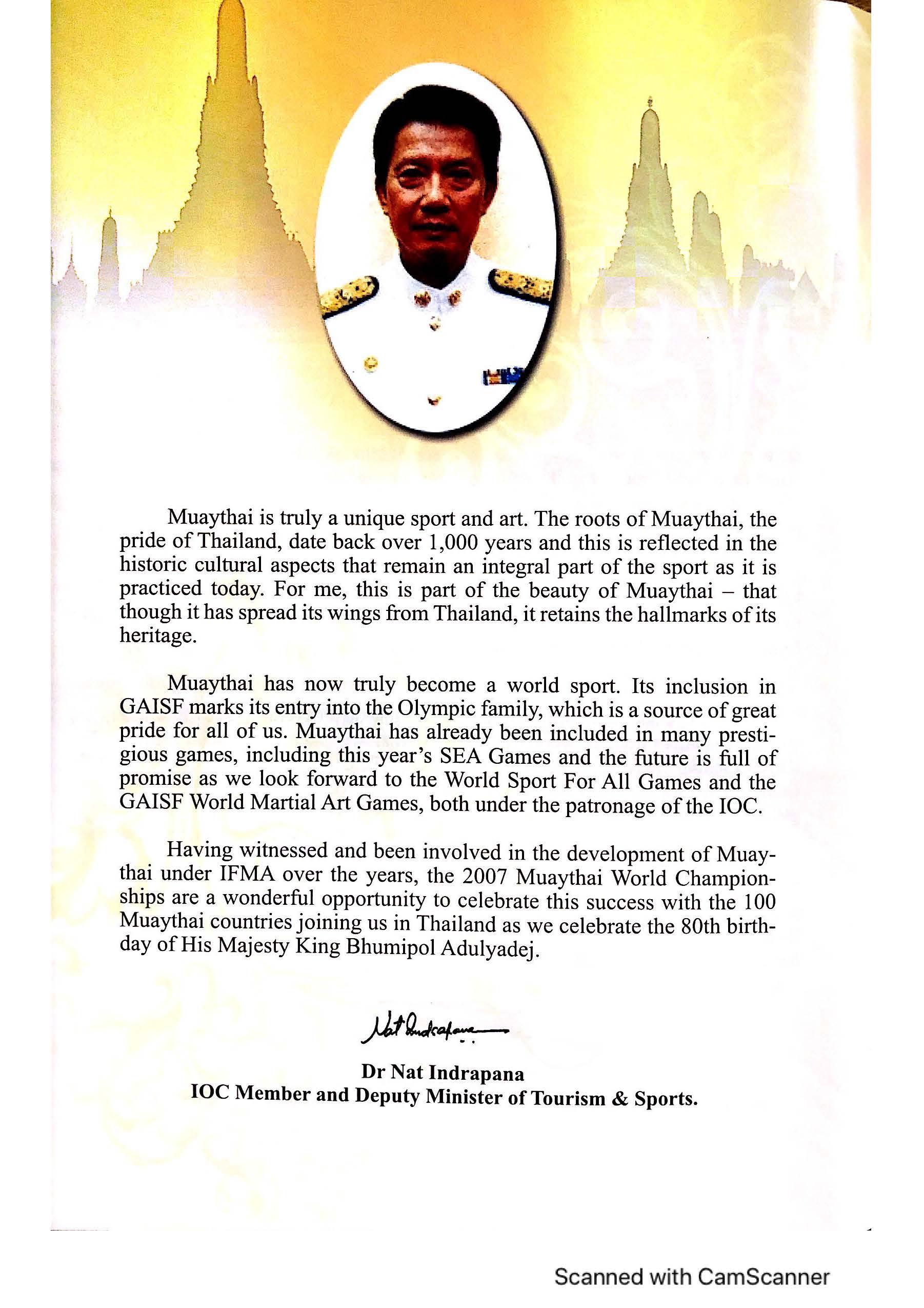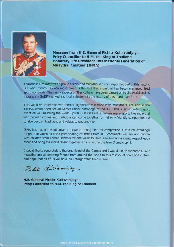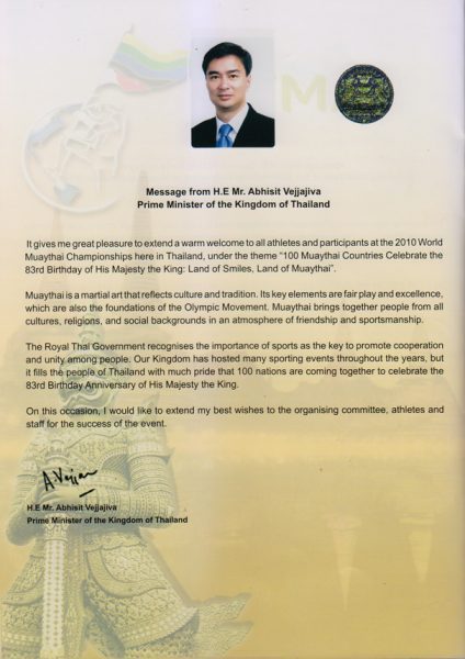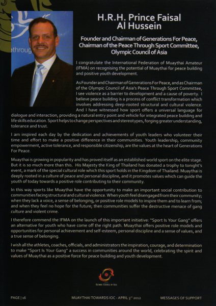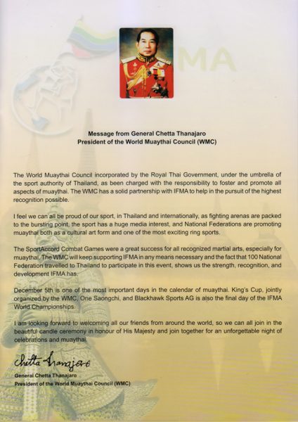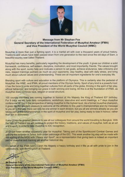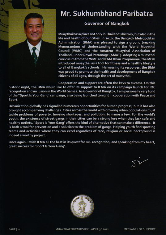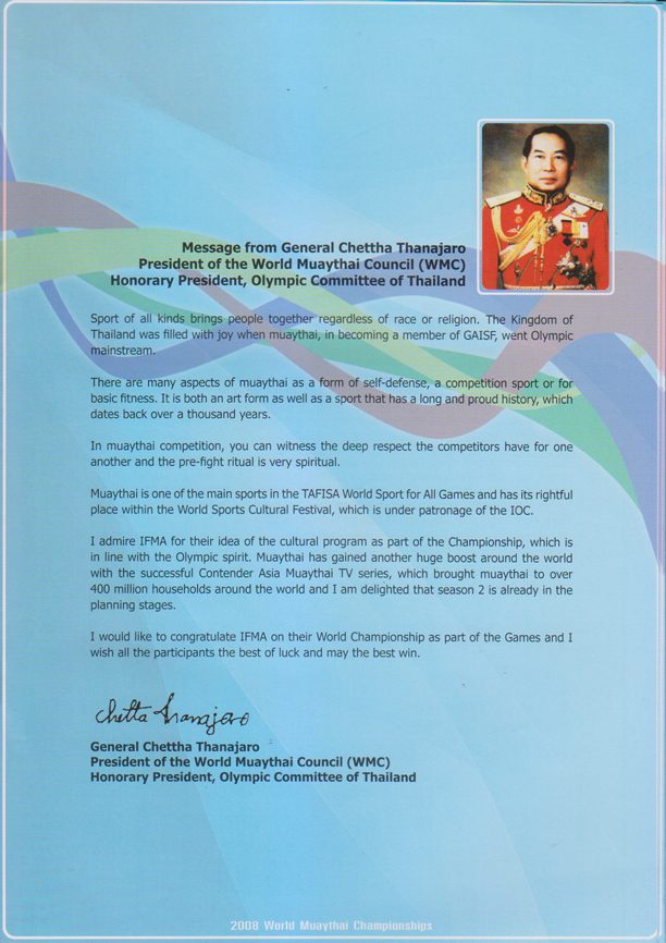 Souvenir Messages – Muaythai Towards IOC & Olympic Recognition 2012