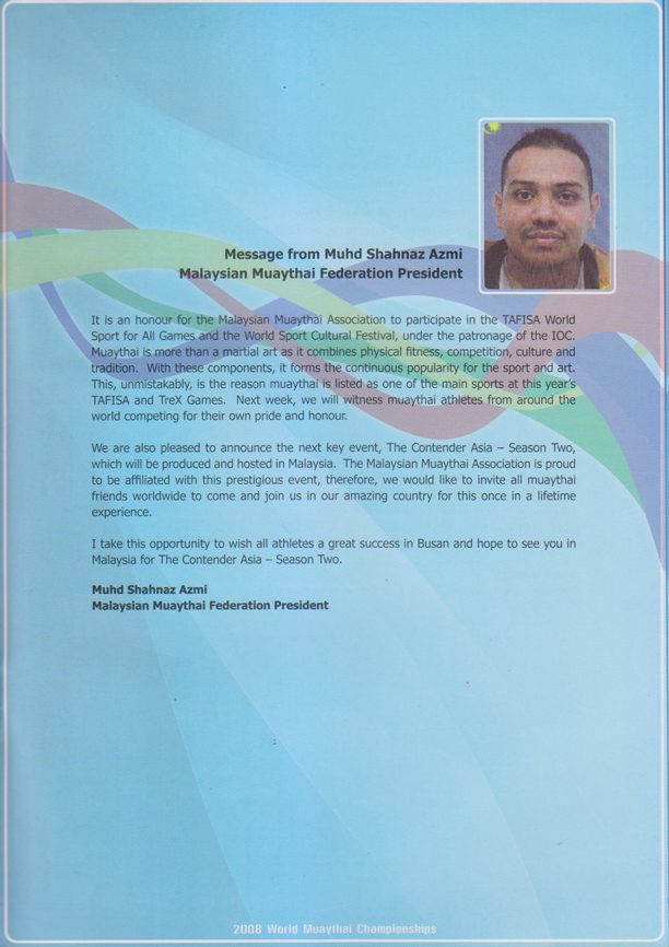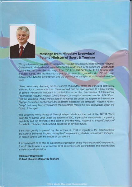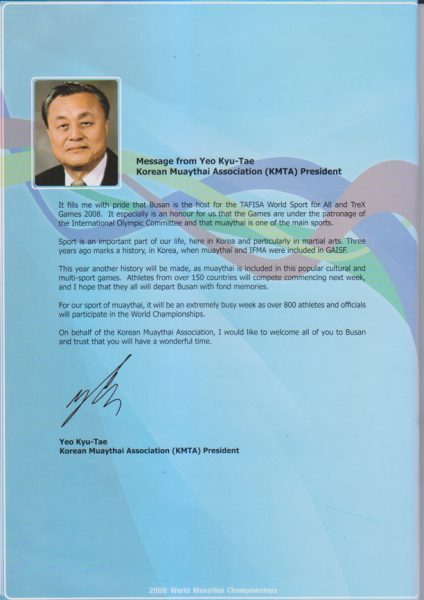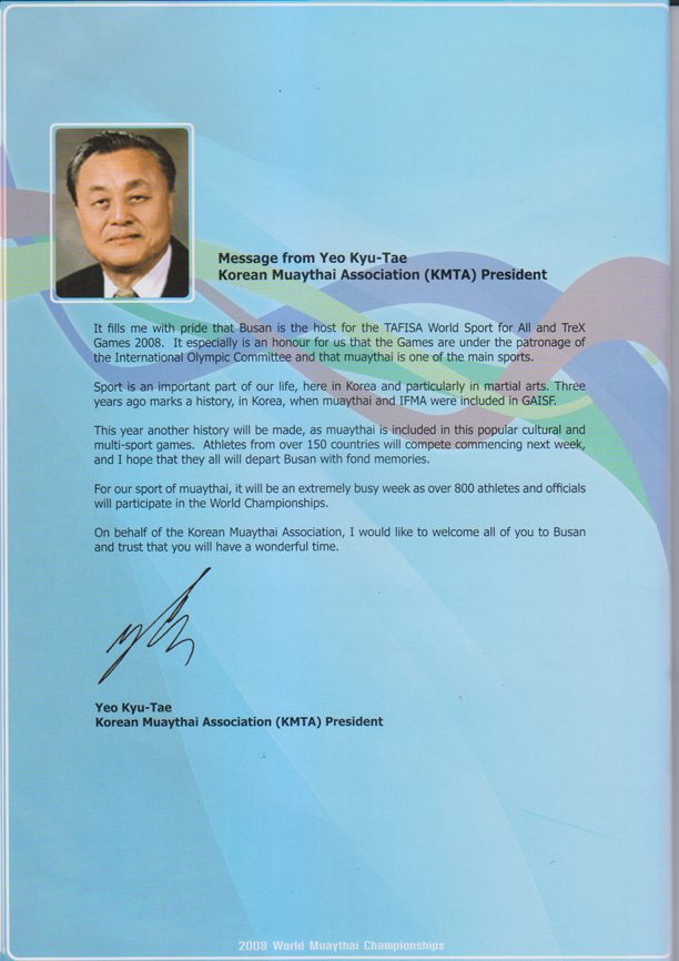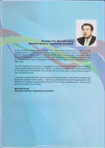 Souvenir Messages – TreX-Games Busan 2008 – World Muaythai Championships
