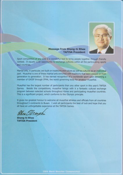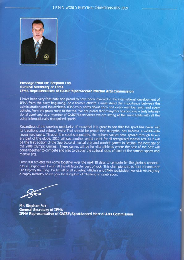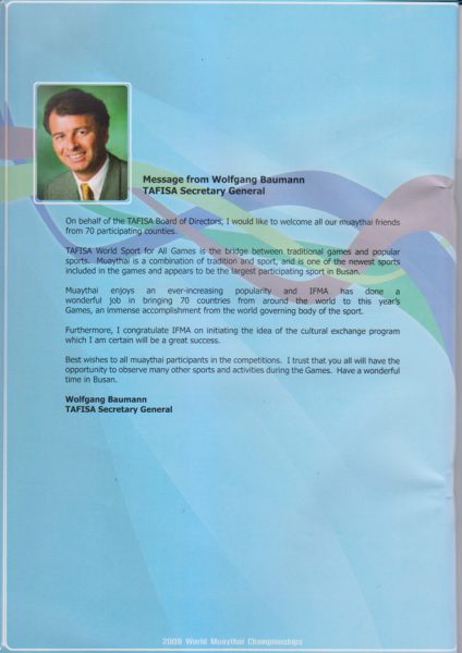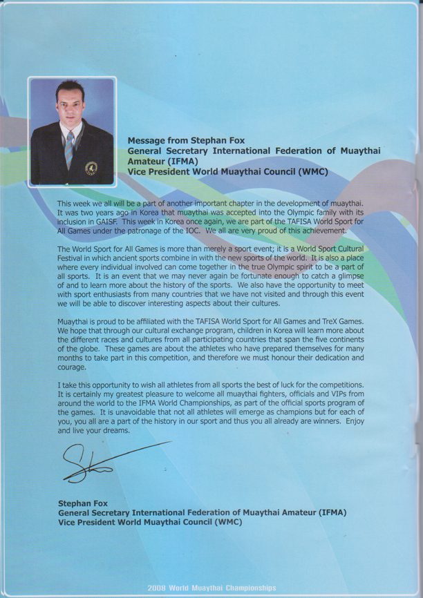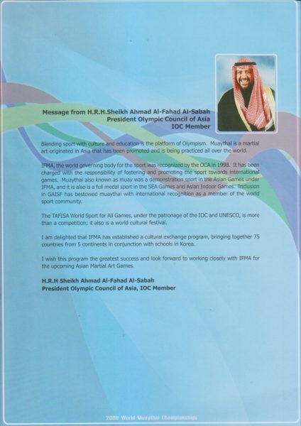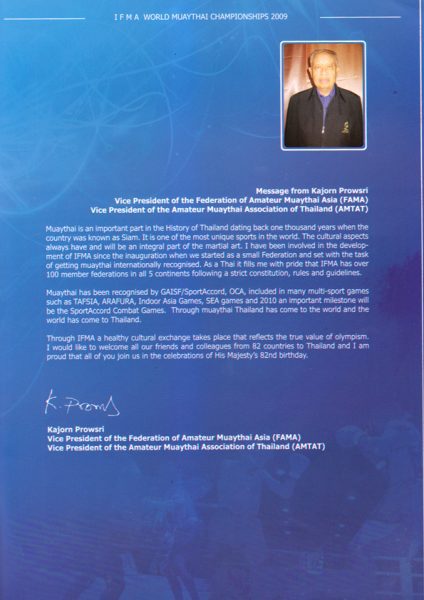 Souvenir Messages – IFMA World Muaythai Championships 2009