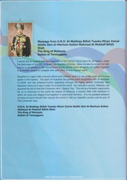 Souvenir Messages – 2004 – World Muaythai Championship & Festival