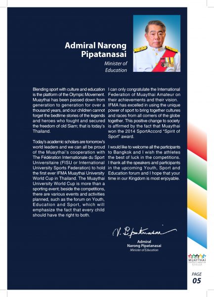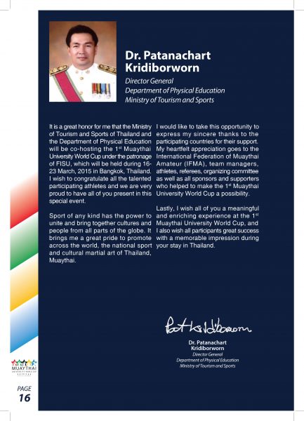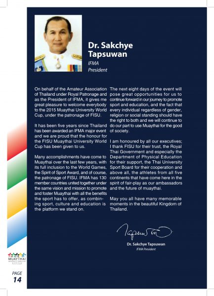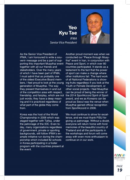Souvenir Messages – “Muaythai Revealed” Souvenir Book, 2019 Edition