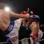 The event as usual had a big international fight card, and first up was Australian superstar Dane “Daddy Cool” taking on Raphael Simonidis, the WMC MAD Champion and Bronze medal winner of the IFMA World Championships, from Poland. Both boys went to work from the opening of the round and in a fiery exchange the Polish fighter caught Daddy Cool with a superb headkick and the referee had to stop the fight. A great win for the Polish visitor.
