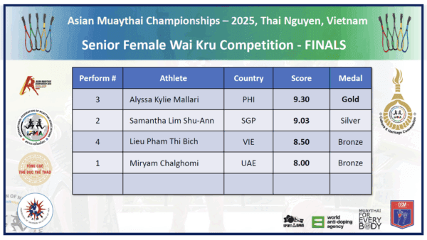 On the grand stage of the Asian Muaythai Championships in Thai Nguyen, the Finals of the Wai Kru and Mai Muay divisions captivated spectators with a powerful display of tradition, discipline, and artistry. While the combat events delivered electrifying drama, these divisions reminded us all why Muaythai is more than a sport—it is a martial art steeped in heritage, emotion, and spiritual depth.
