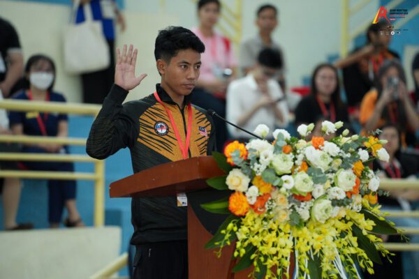 As is tradition, oaths were taken by representatives of the athletes, technical officials, and coaches. Wassof Rumijam (MAS) spoke on behalf of the athletes, Pham Thi Huong (VIE) represented the ITOs, and Jebreel Abu Isnaineh (UAE) stood for the coaches—all pledging integrity and fair play throughout the competition.