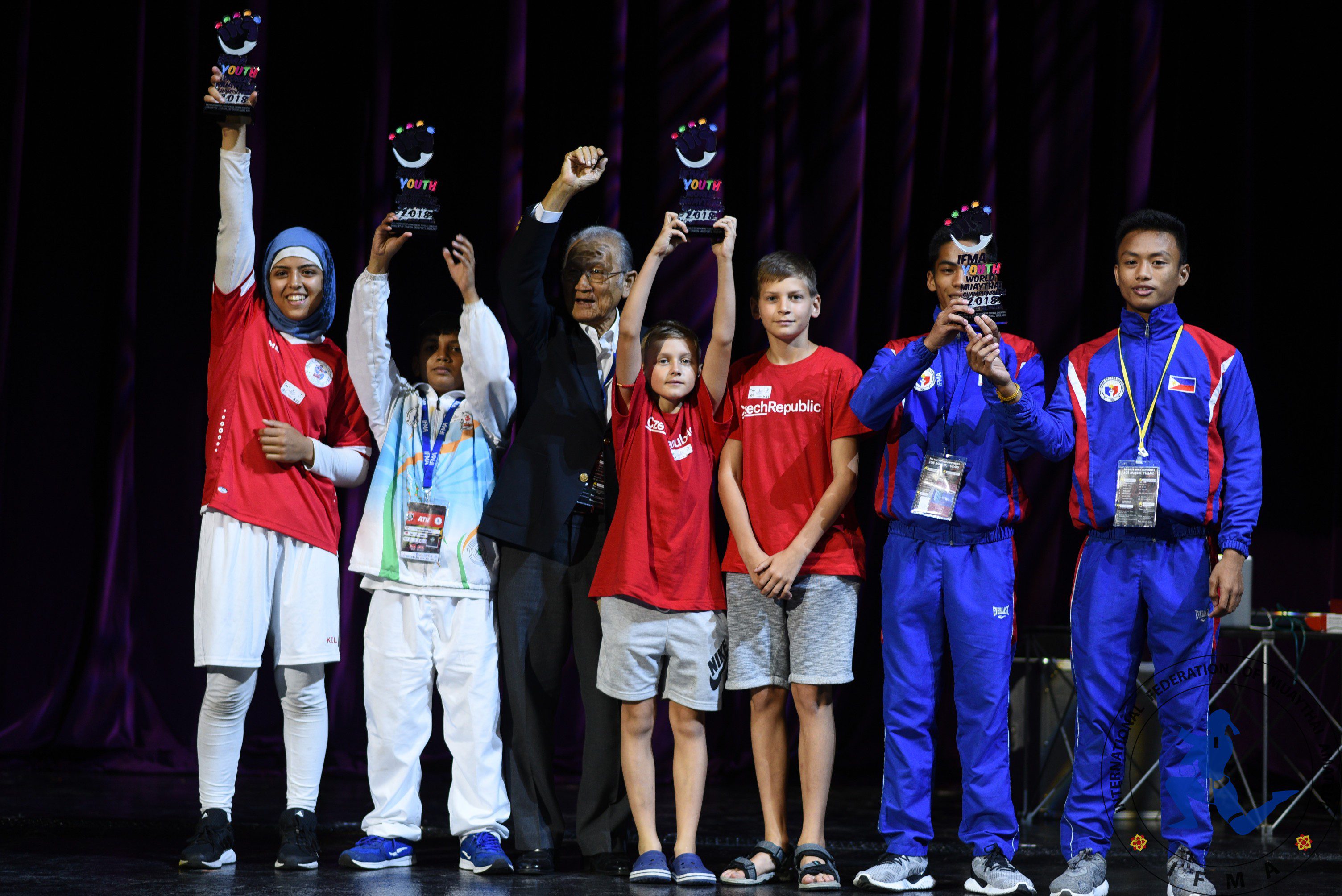 There were almost 700 young athletes from 82 countries gathered in Bangkok this week, all showing great muaythai skill and talent. And among them were a few who really stood out either for their ring skills or their exemplary behaviour during the tournament. IFMA honoured these young athletes and some officials at a moving ceremony after the final bouts.