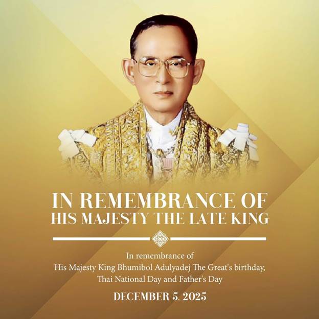 As December 5th is celebrated as Thailand’s National Father’s Day, the nation unites to honour the birthday and enduring legacy of His Majesty the late King Bhumibol Adulyadej. Since his passing on 13 October 2016, this day has become a profound moment of remembrance for King Rama IX a monarch whose wisdom, compassion, and unwavering devotion to his people have left an indelible mark on the Kingdom and the world.
