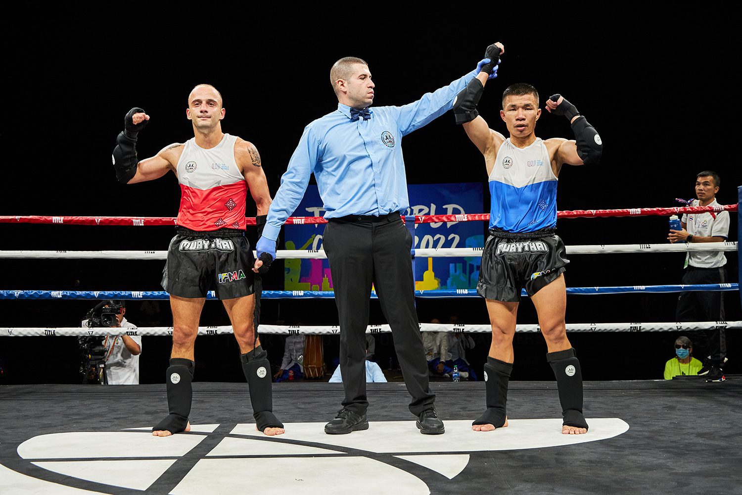 Jordan silenced the audience with a stunning performance and a massive spinning back elbow against USA. Kazakhstan defeated EMR and SEA Games Champion, Nguyen Tran Duy, from Vietnam beat Portugal, the world champion from the Philippines lost against European champion from Ukraine and Kazakhstan beat EMR.