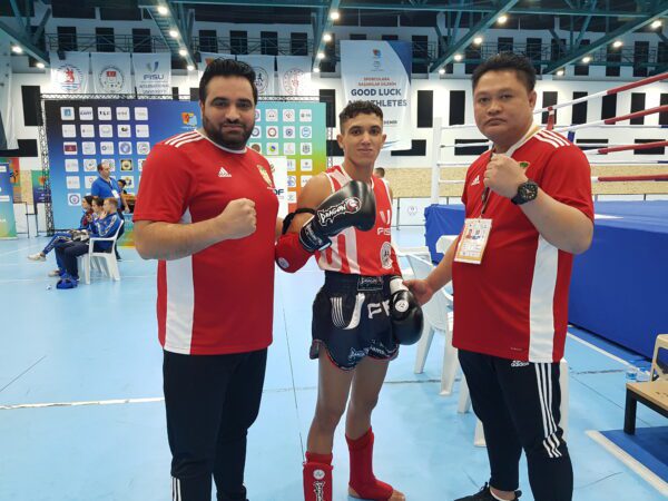 Honorable mention to Team Thailand’s Phakphum Kaithin from Thailand National Sports University Lampang Campus who great distance control, long kicks and devastating knees controlled his Turkish opponent from start to finish for the win.