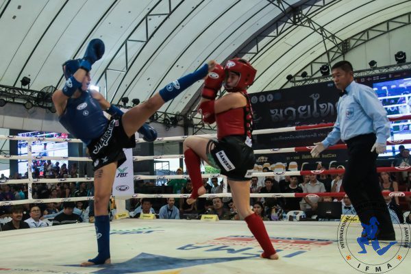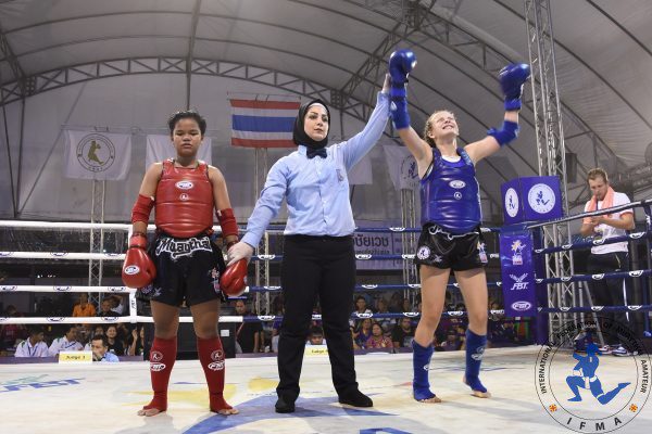 In other thrilling bouts in the female divisions Russia’s Marqarita Voitovich  faced Thailand’s Chonthicha Pachob at 46kg in the 12 year old category. Marqarita used long-knees, and rapid-fire punch combinations especially a looping right hand to take the win.