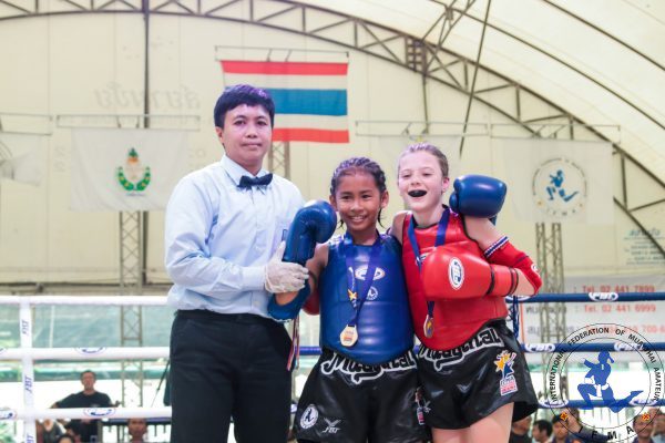 A friendship began today between two young girls who fought each in the ring, and then spent the day hanging out  – bringing smiles to everyone’s face at the IFMA Youth muaythai World Championships.
