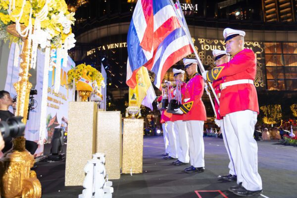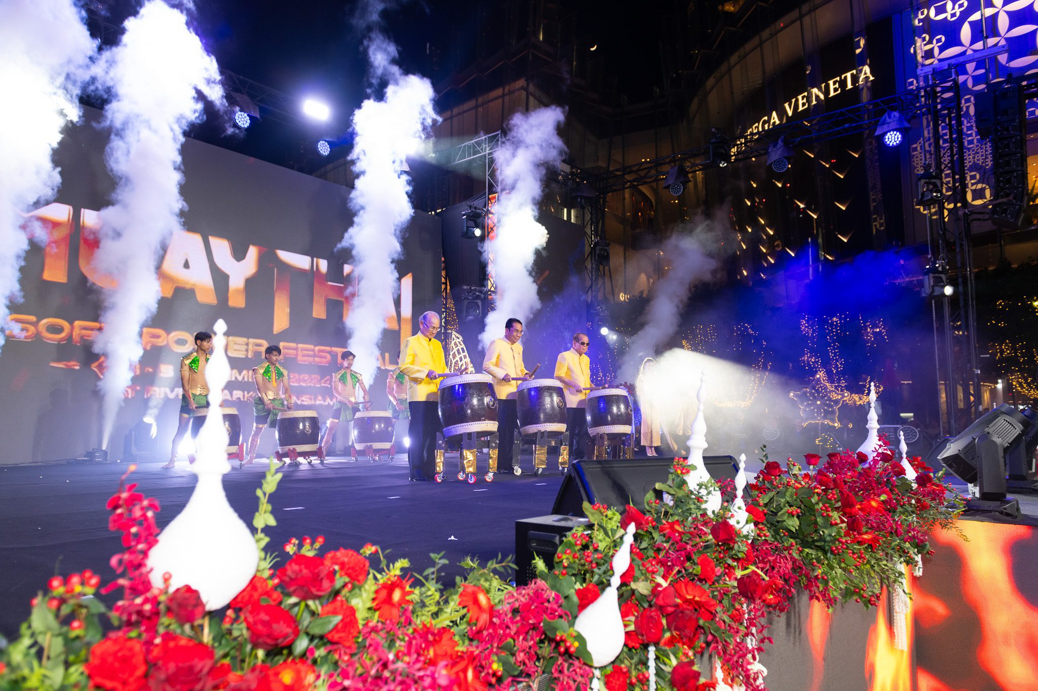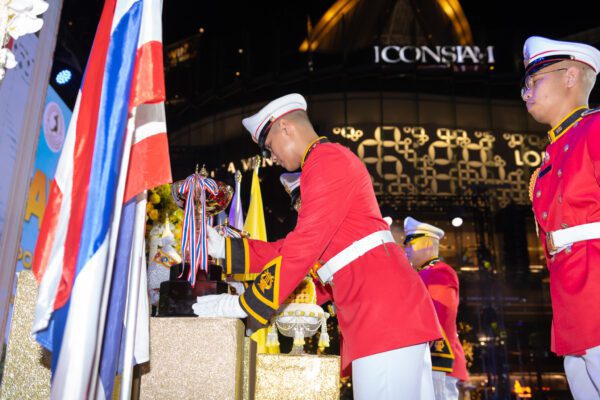 The celebration was held at the Icon Siam riverside venue, providing a magnificent setting for the event. The festivities commenced with stunning Muaythai demonstrations and cultural performances, blending athletic artistry with Thailand’s rich traditions. The ceremonial highlight was the Royal Trophies’ grand entrance, carried into the arena by the Royal Guard, a moment met with resounding applause from the packed crowd.