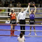 Fight four was between Belarus Marya Valent and Isa Tidblad Keskikangas Sweden in the last women’s final of the day, most of the women’s finals have been concluded on Friday. This was, as the crowd by now expected, an even contest with both athletes very evenly matched. Valent’s husband Dmitry who would compete in bout number 10 was watching closely from the stands. The result on points went to Sweden with the final round seeing her throw ‘a superman punch’ followed by a great series of knees, which Valent responded to well but just not well enough.