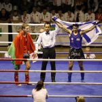 Israel’s Itai Gayer took on Raman Dounar from Belarus in the sixth bout at 63.5kgs. These two boxers had very different styles with Gayer taking a deceptively relaxed approach. He won on points in spite of Dounar battling back with swift punch combinations, both men using knees in the inside and longer range to good effect.