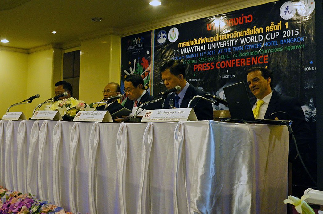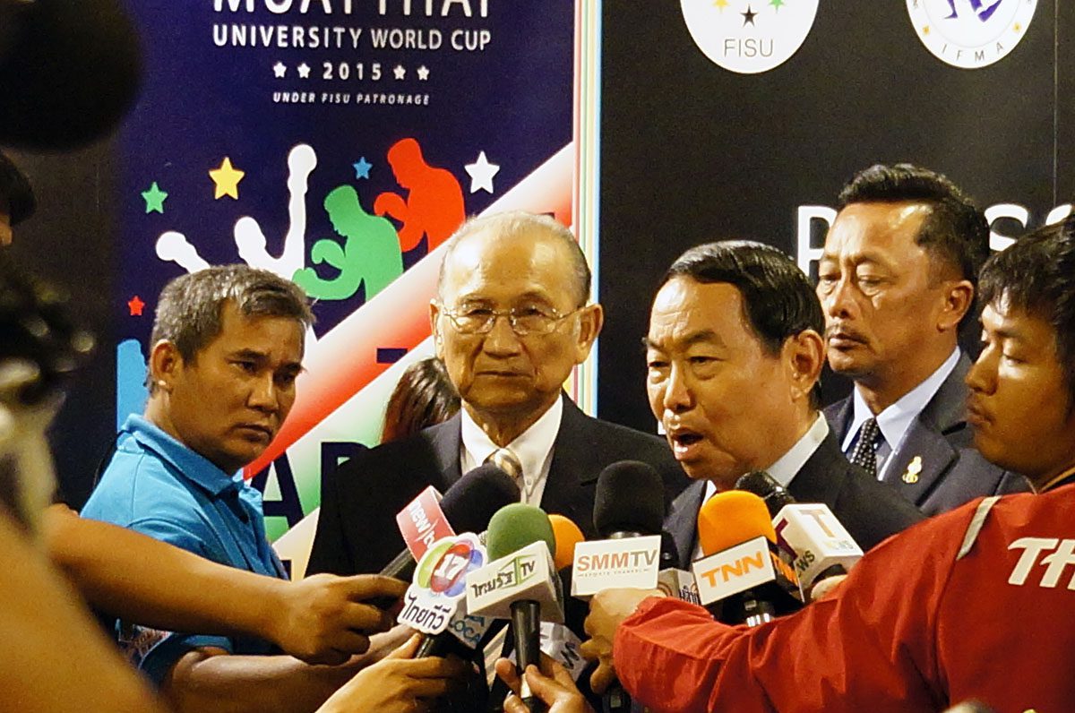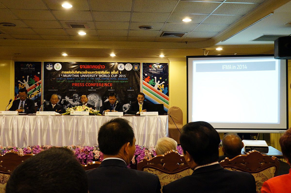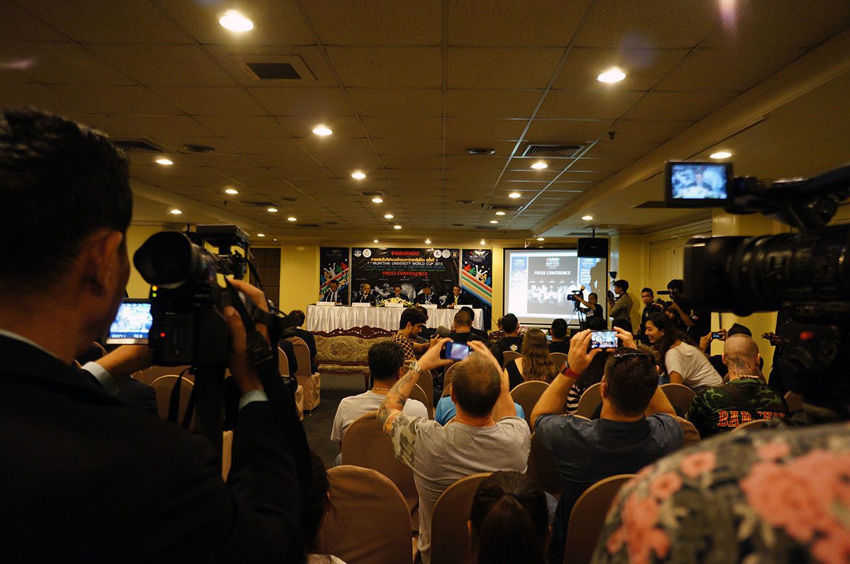Over 50 press and TV agencies showed up to the press conference. General Chetta Thanajaro opened with a welcome speech stating that the Muaythai University World Cup is another important step in Muaythai’s journey towards IOC recognition. Mr Niwat Limsukneeran, from the Department of Physical Education, outlined the importance of education, sport for all and reiterated Muaythai’s push for IOC recognition. IFMA President Dr Sakchye Tapsuwan shared IFMA’s pride in last year’s inclusion of Muaythai in The World Games 2017, and this year FISU, another partner of the IOC, has given patronage to the Muaythai University World Cup. IFMA General secretary Stephan Fox made a presentation stating that 43 countries have been invited to the Muaythai University World Cup; bearing in mind 43 being the same number of countries in the first ever FISU Universiade in 1959.