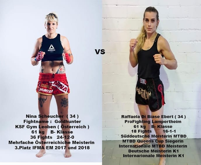 The main event will be between the Austrian champion Nina Scheucher from K.S.F.  Gym Leoben, a multiple competitor at the IFMA World Championships and Austrian national team member against Raffaella Dibiase Ebert from Pro Fighting Lampertheim.