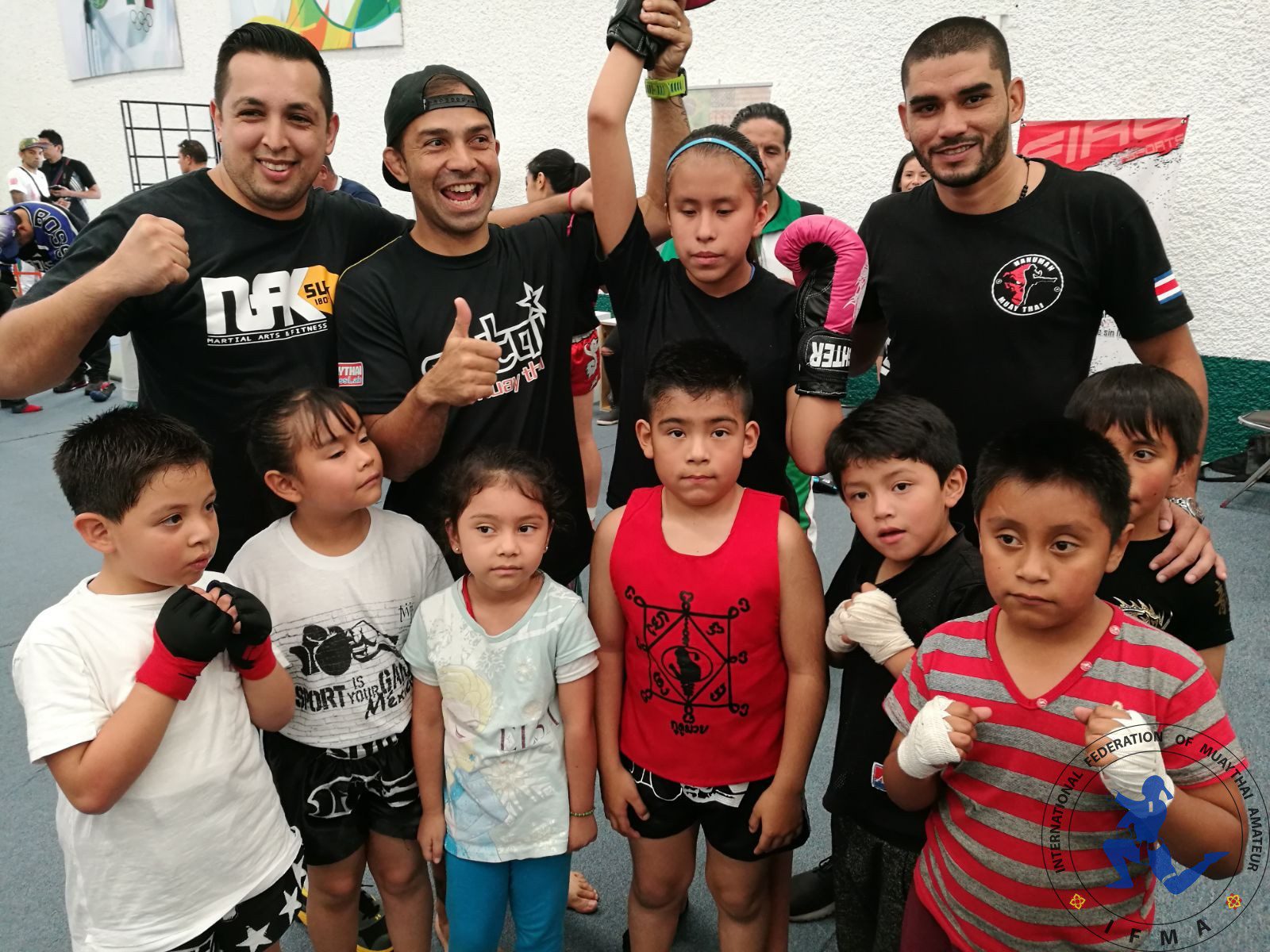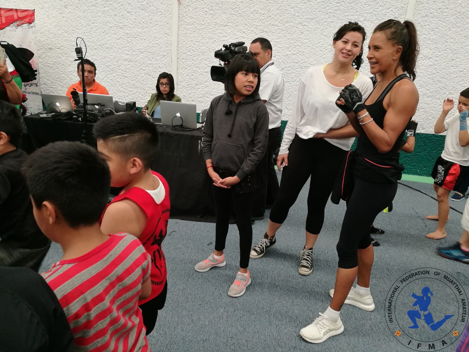 Male and female athletes took centre stage for the day, and the crowds were also entertained by a demonstration of skill from over 200 children in the Mexican Sport Is Your Grang project. And in a beautiful example of how the IFMA muaythai family works together, various national coaches took time before the bouts to teach these kids some extra muaythai skills.