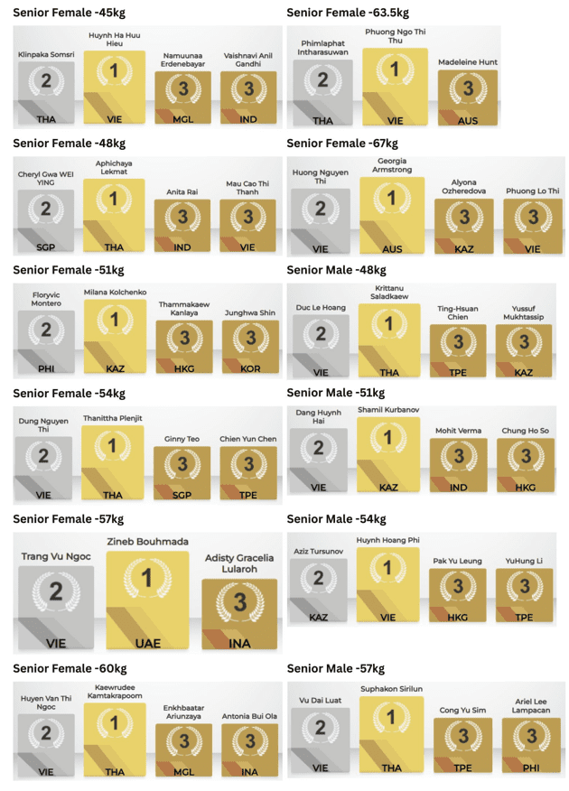 The grand finale of the Senior Elite Division at the Asian Muaythai Championships 2025 was nothing short of breathtaking. With the Thai Nguyen Sports Center packed wall to wall, fans filled the air with thunderous cheers, waving flags and chanting in unison. The spirit of Muaythai pulsed through every corner of the arena as VIPs from the Vietnamese Government and Sports Ministry joined the crowd to witness Asia’s finest athletes lay it all on the line.