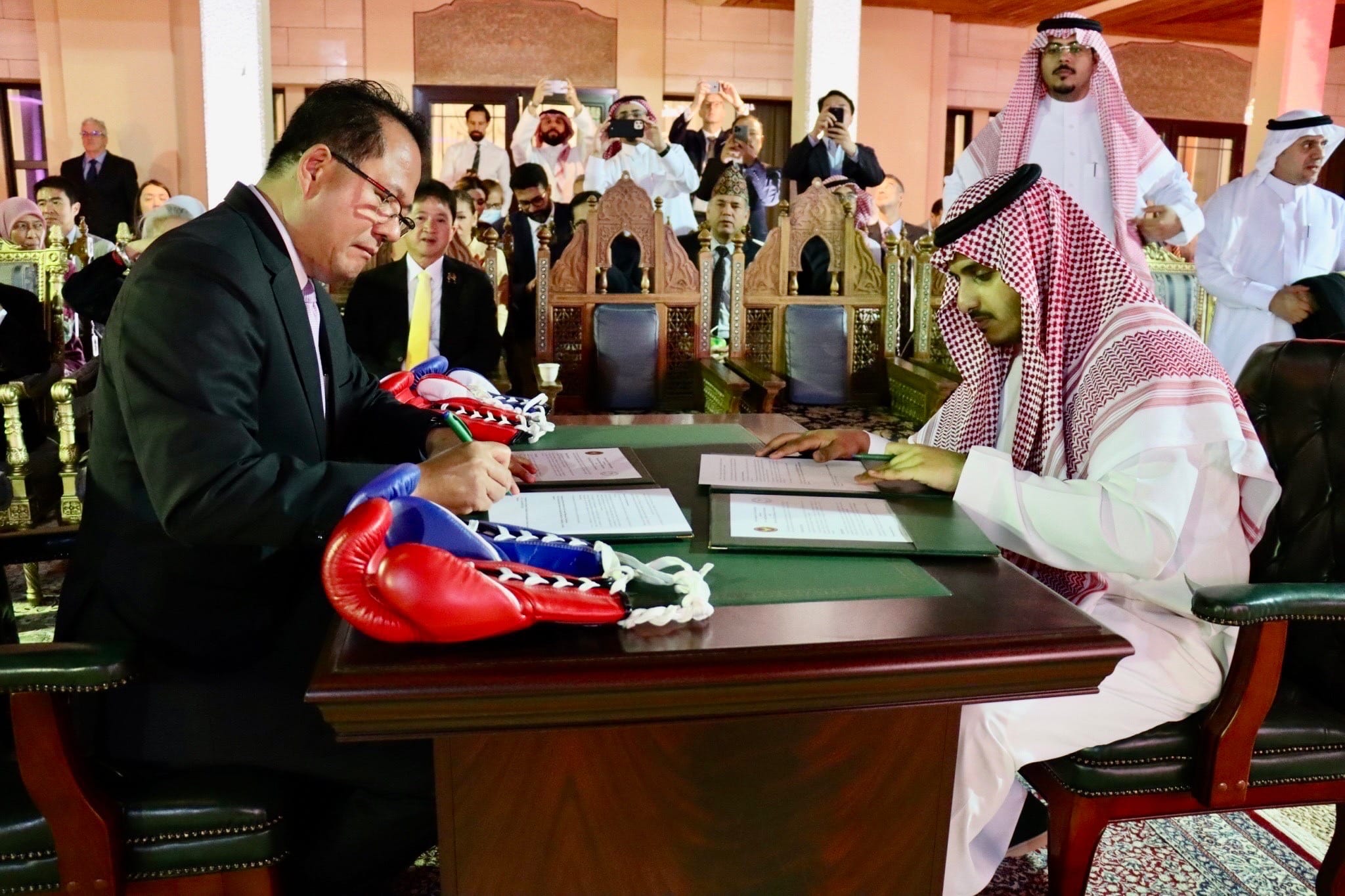 A historical MoU signing took place inside the compounds of the Royal Thai Embassy in Riyadh in the Kingdom of Saudi Arabia, signed between the Royal Thai government and the Muaythai Federation of the Kingdom of Saudi Arabia and also between IFMA, the world governing body of muaythai recognized by the International Olympic Committee.
