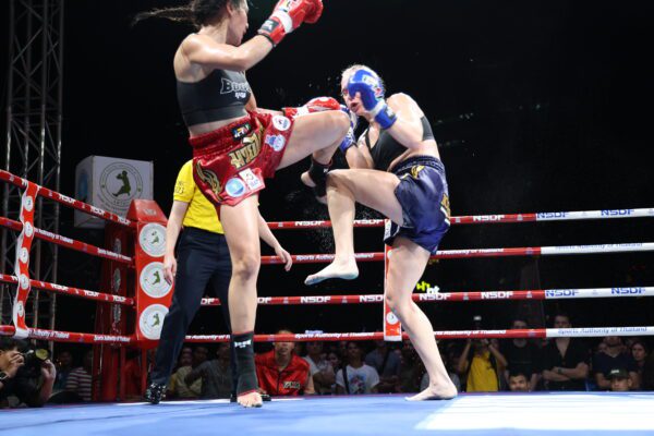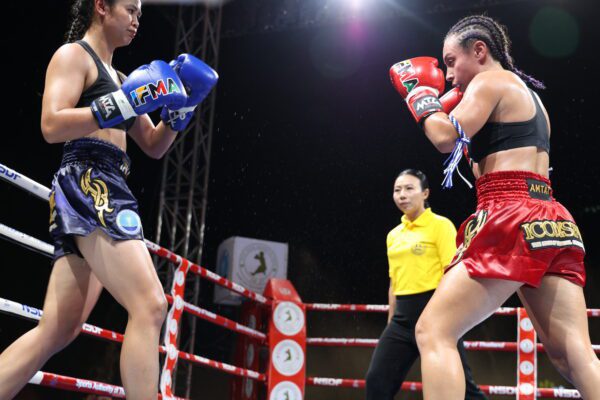 In the female division, it came down to the match between Kennedy Maze from USA and Thai Champion Gumlaipetch Petchyindee Academy. It started with both athletes performing a beautiful Wai Kru and then it was the night of Gumlaipetch Petchyindee Academy who, in front of a packed and enthusiastic crowd, and televised live, showed she was determined to raise the trophy of all trophies. Respect goes to Kennedy Maze from the US, who for three rounds, weathered every storm, battling back fiercely but it was Thailand’s Gumlaipetch Petchyindee Academy, who took the decision and the Queen’s Cup 2023.