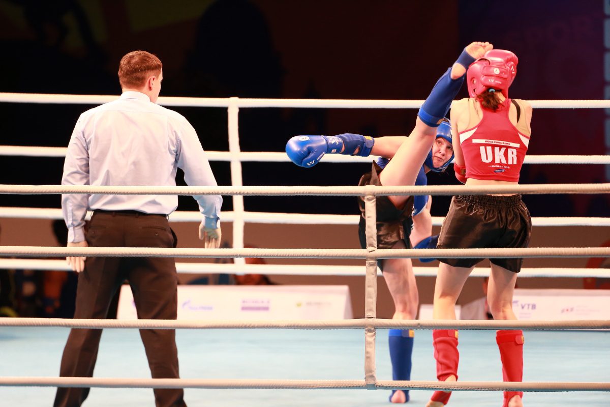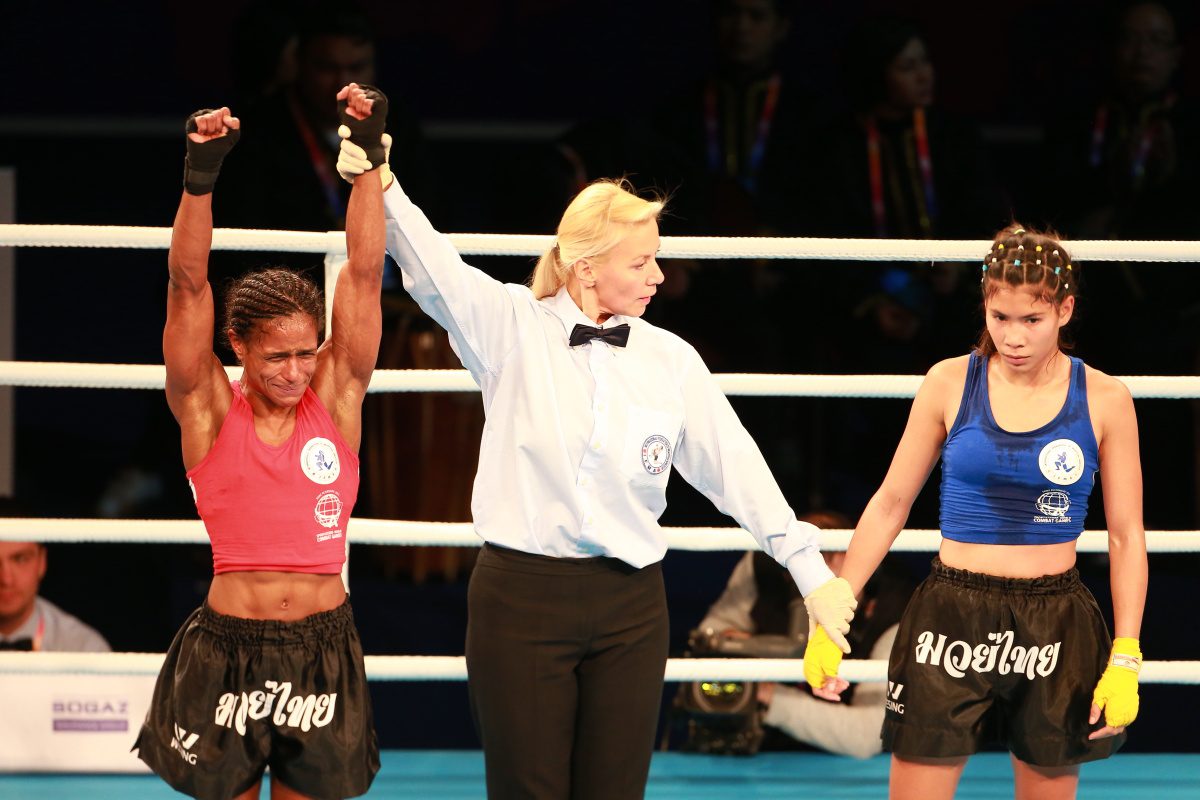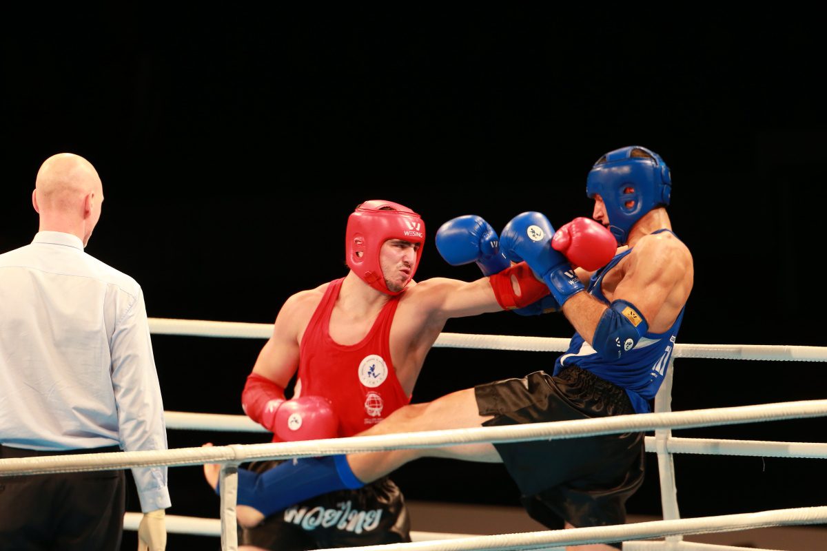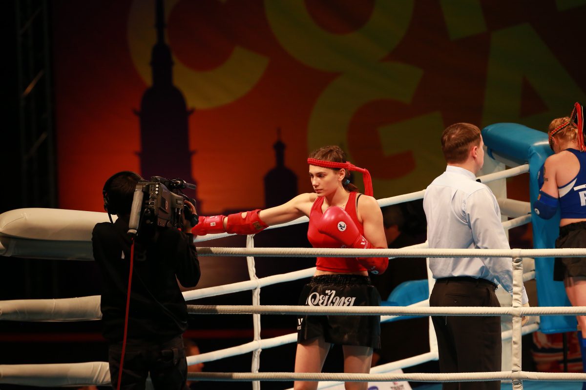 The 2 highlight male fights of the night were Russia’s 2 main hopes, Artem Levin (81KG) and Artem Vakhitov (91KG). Both fights had the crowd on their feet. Artem Levin dominated throughout all 3 rounds, starting strong with a high kick to Valent’s face. Levin, showing great technique, consistent power and devastating sweeps took the gold home. In the 91KG bout, experience prevailed. Vakhitov came out with text book muaythai, stopping the eager Italian Barone with a series of powerful body shots driving it home with a final flying knee and sealing the fate of the Italian and giving the crowd the one spectacular knock out of the entire event.