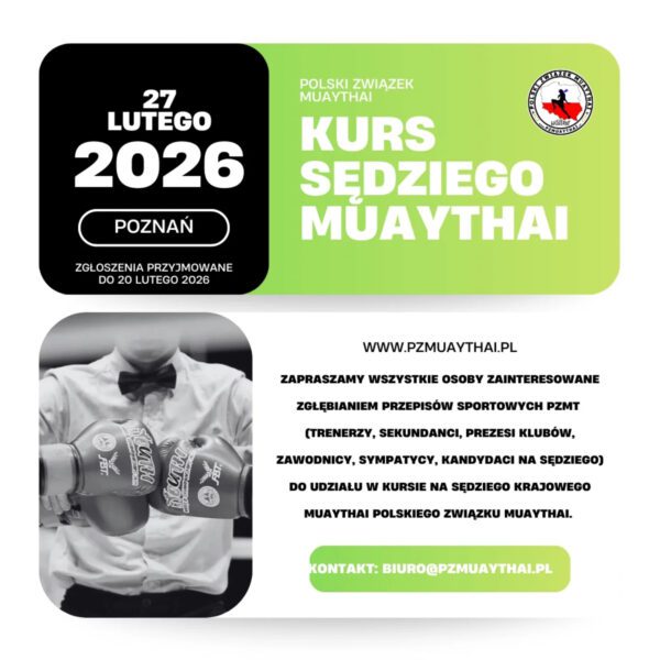 Poland’s National Referee Course focuses on Muaythai judging criteria, officiating standards, and federation rule education. Participants completing the theoretical examination qualify for practical officiating roles at sanctioned Muaythai competitions.