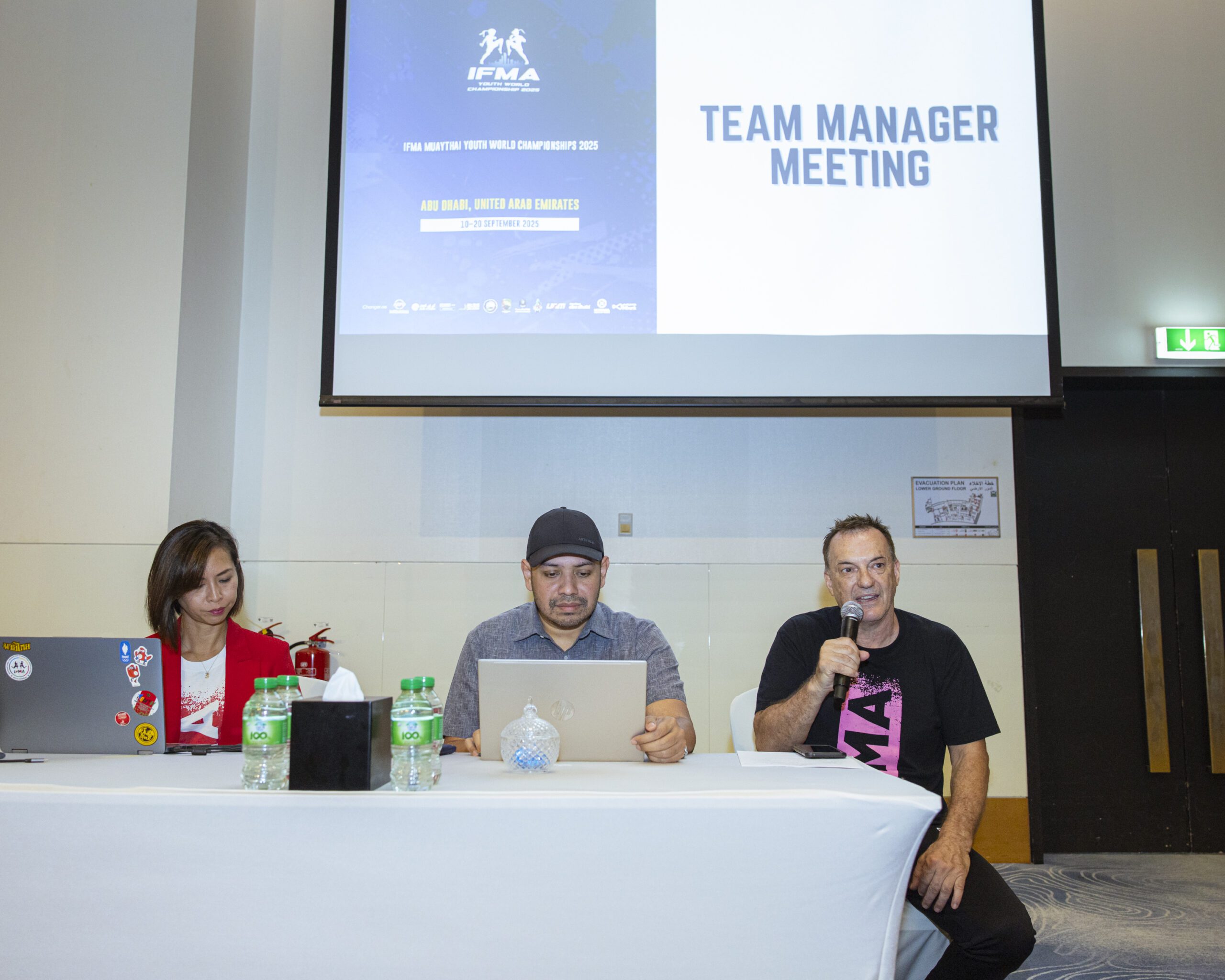 The IFMA Youth World Championships officially launched with the highly anticipated Team Manager Meeting, held at the Crowne Plaza Hotel on Yas Island, Abu Dhabi. With over 100 nations represented and more than 2,000 participants, the atmosphere was electric as teams gathered to align on final preparations for the week of elite youth Muaythai competition.