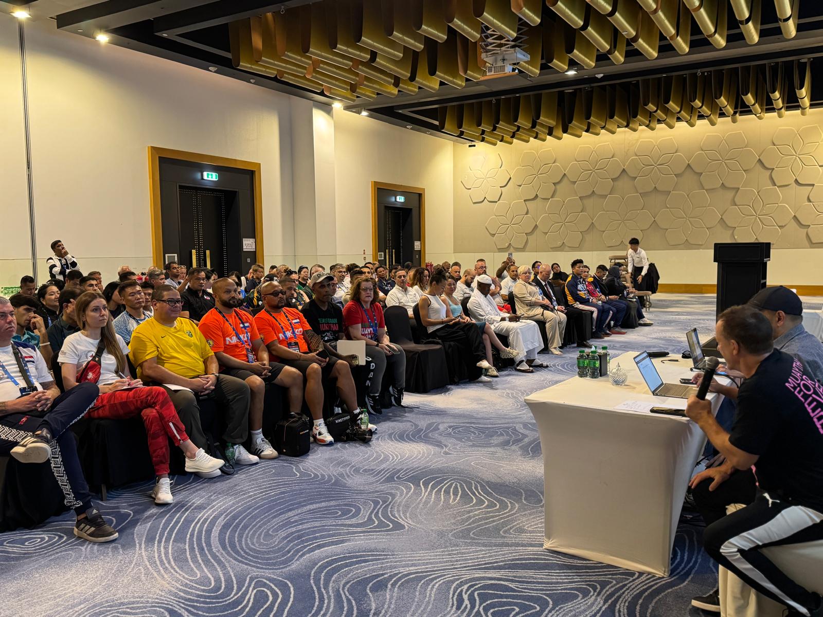 Secretary General Stephan Fox opened the meeting with a powerful message of unity and excellence, setting the tone for what promises to be a historic championship. Director General Charissa Tynan led the session, guiding team managers through key updates, logistics, and athlete welfare protocols.