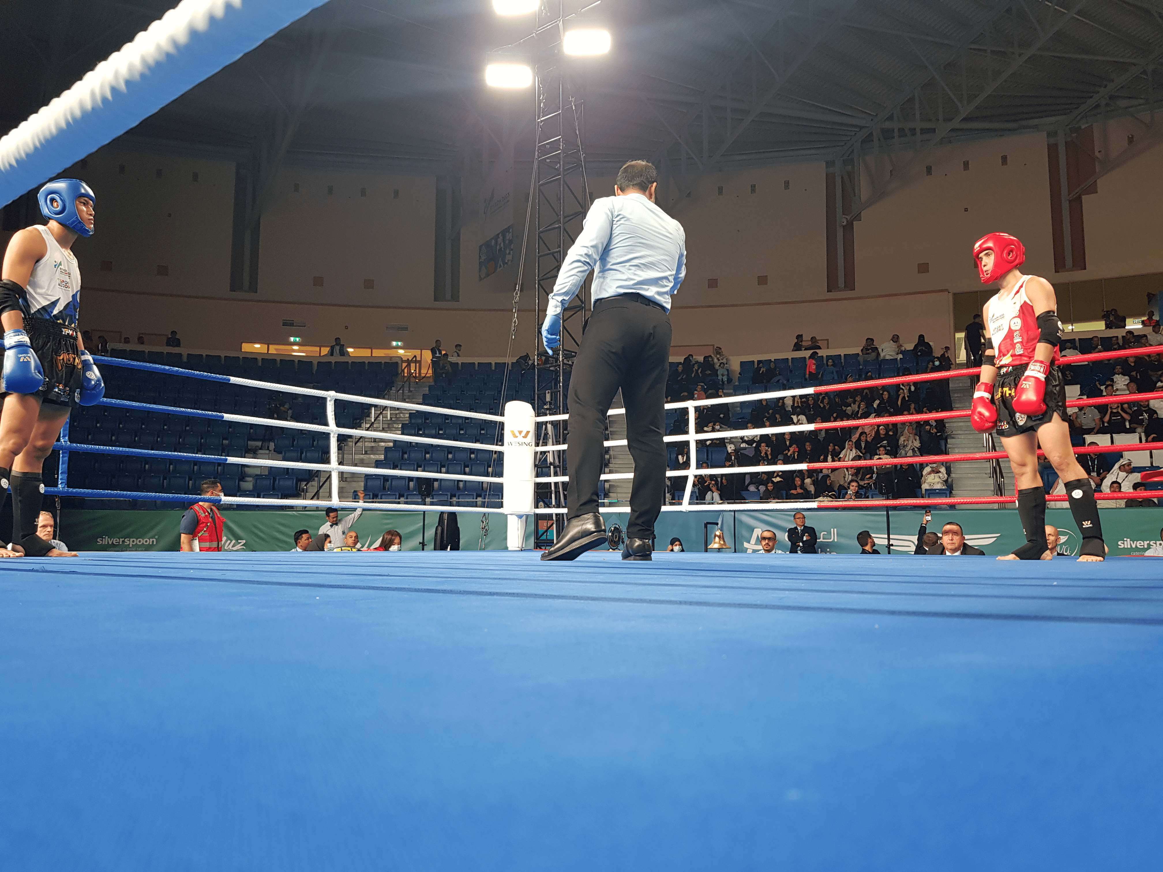 In the 48kg female division Rudzma Abubakar used her long limbs and technical skills to win unanimously against the home team’s Dana Alghussein. Thailand’s Nirawan Tangchio and Ukraine’s Anastasiia Mykhailenko went toe to toe in an exciting battle that could have gone either way with Thailand coming out on top.
