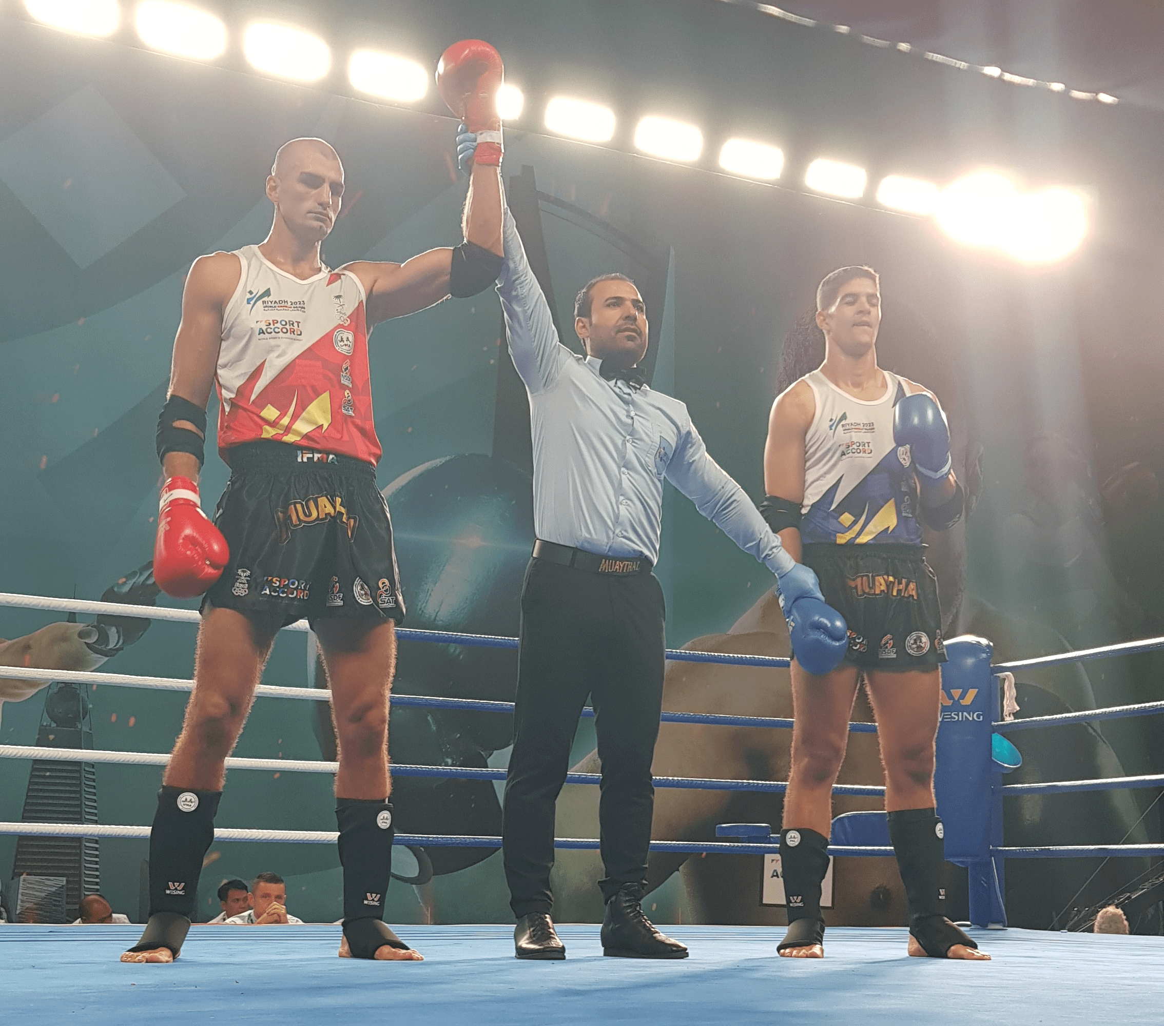 In the 67kg male division Thailand’s superstar, Anueng Khattamarasri came out on top in a close decision against Morocco’s superstar, Hamza Rachid.