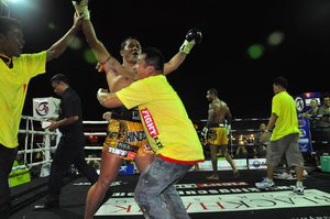 Both went toe to toe for three rounds of full-on, non-stop action. In the end there could only be one winner with a close decision going the way of Yodsaenklai who received loud cheers from the home crowd for claiming the trophy.