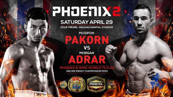 Lebanon will host an A class event in a 8000 seater Zouk Mikael-Nouhad Nawal stadium. There will be two world title fights on the card one male and one female. Thai superstar Pakorn Pk Saenchai, former WMC world champion, Ratchadamern champion and Lumphinee champion Vs Morgan Adrar from France WMC European champion.