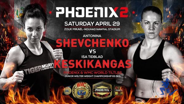 Second world title fight will be the female world title fight, between two IFMA world champions going toe to toe for the belt of all belts, Antonina Shevchenko from Peru Vs Isa Tidblad from Sweden.