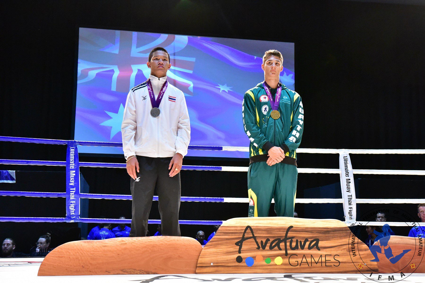 Man definitely impressed everyone except Damon who from the first round started to fulfill his plan for the fight. The Australian won the first round and kept going strong in the second and third sending his Thai opponent to the canvas two times with his strong punches. Confident victory and the gold medal for Damon was the result of his effort and Australia celebrated again upsetting a huge group of Thai supporters.