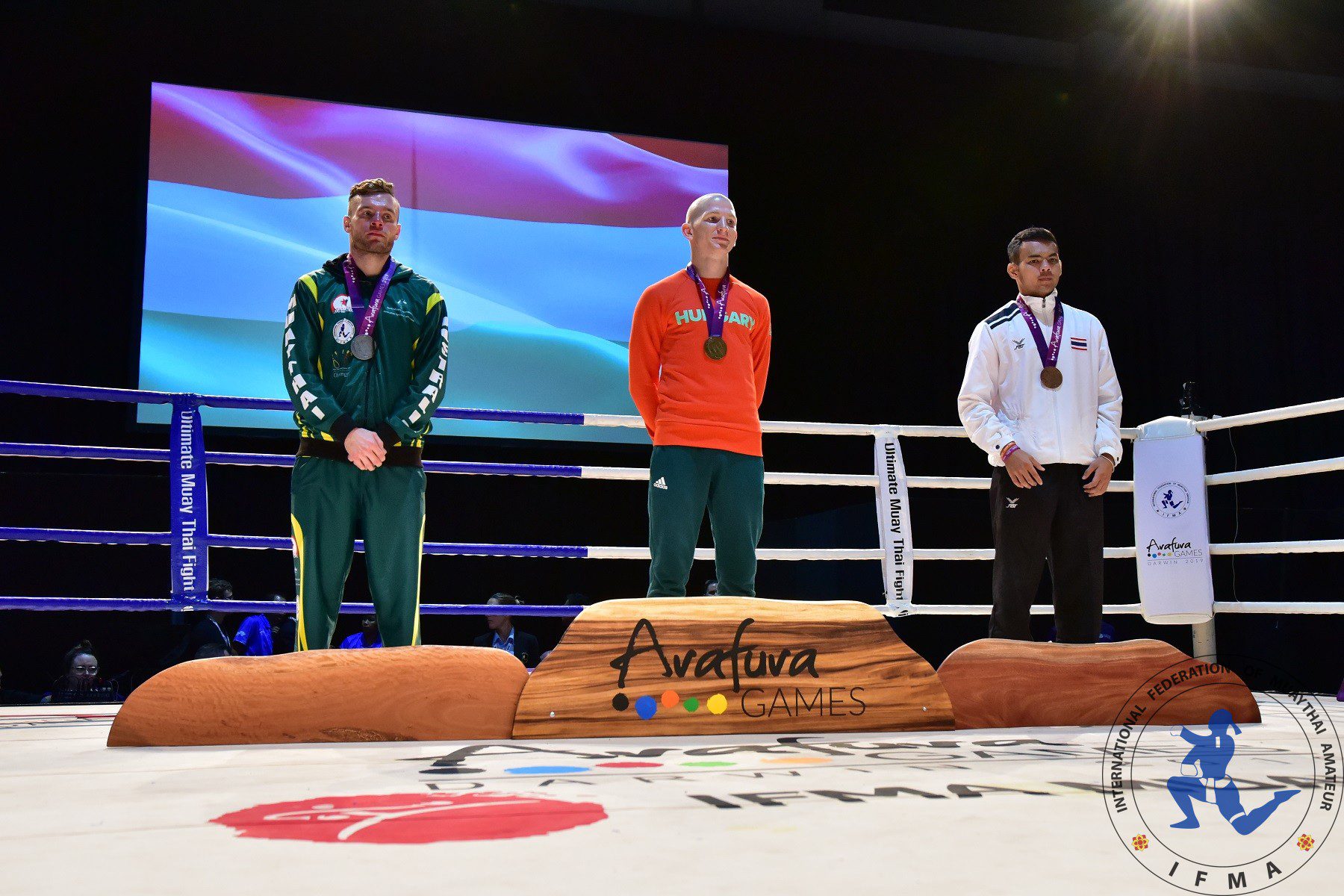 In the men’s division 75 kg Hungary competed against Australia with Zoltan Nardelotti and Chad Pinkey making their way to the ring cheered by the crowd of the Darwin Convention Center. It was a great bout by both athletes. It was the Hungarian who used his experience to secure the second gold for his team bringing the 100% result home with two athletes winning two gold medals. Later on Zoltan said that he took on every opportunity to polish his skills and gain experience. Winning gold medals in three events in a row – EMF Antalya Open, Baltic Muaythai Open, and now Arafura Games put Zoltan’s name into the top of the 75 kg category. It will be now the World Championships in Bangkok where Zoltan will have a chance to take on the world strongest athletes.