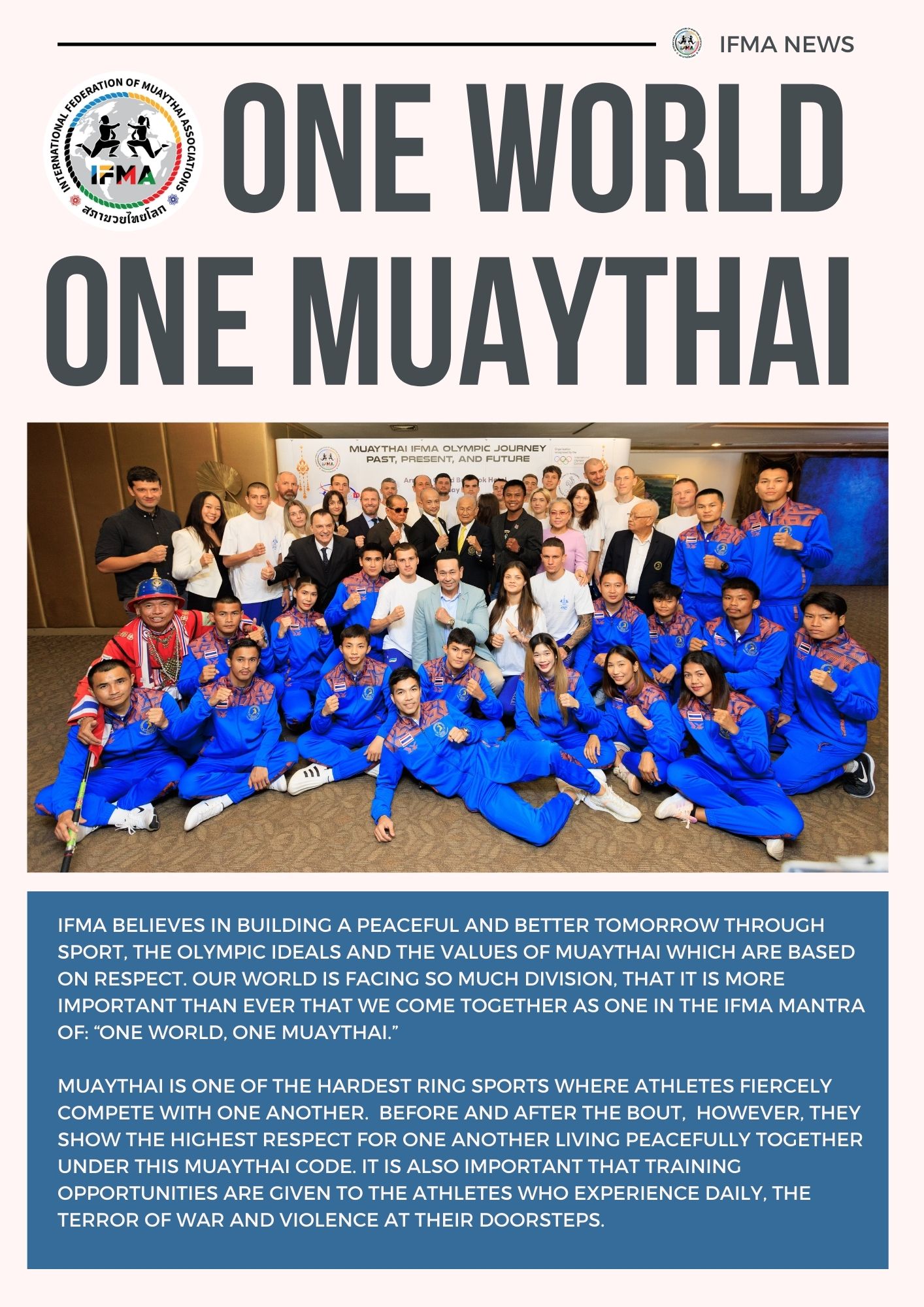IFMA and WMC recognize that Muaythai is not just a sport but a powerful cultural force that offers nak muays and communities a sense of identity, promotes social cohesion, and contributes to health and well-being. Muaythai builds bridges, shapes peace, and brings people together. Under the One Muaythai principle, educational, cultural, and sporting exchanges unite everyone under one set of rules and regulations—from students to masters, from athletes to officials. Together, we are One World, One Muaythai.