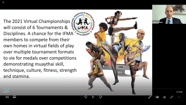 Leading the Virtual Championship Team of Jury ITOs, Gunter Plank delivered training on the judging and scoring for the Wai Kru, Max Fit, and Shadow Box disciplines, while ITO Abby Nelson delivered the training for the Shadow Box discipline. Chair of the IFMA Cultural and Heritage Commission Ajarn Chao together with Kru Id where on hand to deliver the training on the regulation movements of the newest discipline of competition – Mae Mai Muaythai.