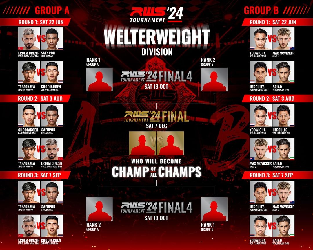 - Debut Platform for IFMA World Champions: Many IFMA World Champions have made their debut on the RWS stage. The organization’s commitment to supporting athletes and providing exposure on a high-level platform has garnered praise. Saturday’s Welterweight Tournament card, for example, will showcase 4 former IFMA athletes and champions namely, Yodwicha, Sajad, Hercules and Erdem Dincer fighting to be in the Final 4 of the tournament.