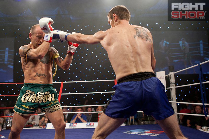 The 4 main fights, that came at the end of the evening, saw firstly Ivan Daminov (Firewalker) facing Andy Thrasher (GFC). Once into the 3rd round, with elbows flying left and right, Daminov stumbles and is given an 8 count. Thrasher pushes forward until the referee is obliged to stop the contest. The seventh fight of the night finishes therefore with Andy having the best over Ivan, with a fantastic KO 2 minutes into the 3rd round.