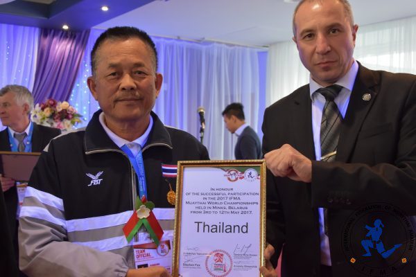 The chairman of the federation General Karaev stated that Belarus was proud and will be proud forever for getting permission to host the 2017 IFMA world muaythai championships which was more than a sporting event, it was a cultural exchange of muaythai athletes and nations together in friendship and fairplay.