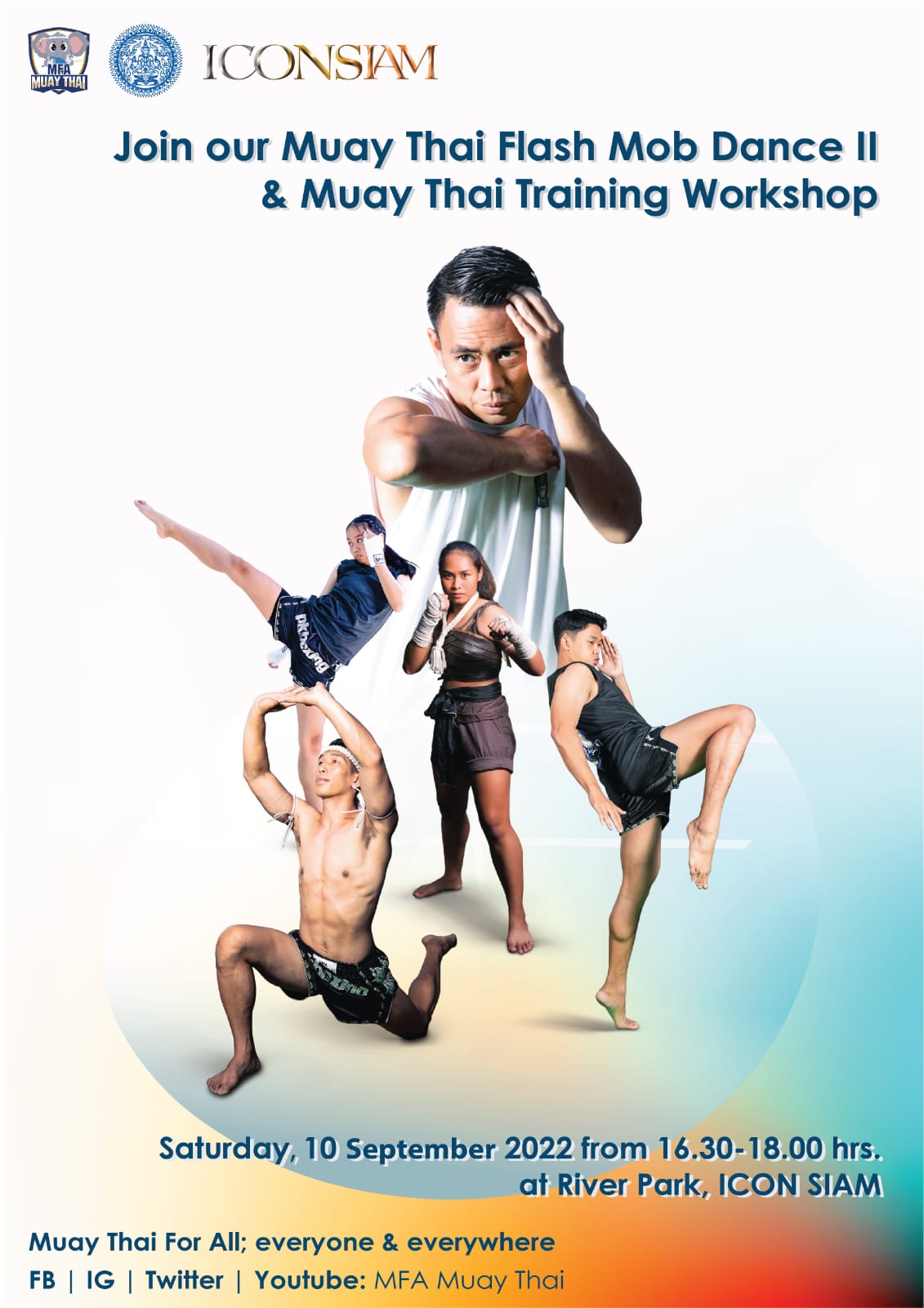 This Saturday, September 10th, Thailand’s Ministry of Foreign Affairs has organized a Flash Mob as part of Thailand’s plan to promote Muaythai towards the Olympics. Kru Din and his athletes will once again take the lead with the Flash Mob taking place in Thailand’s largest and newest Shopping Center, Icon Siam, followed by a Muaythai Training Workshop for the public. Get ready to Stop, Drop and Muaythai!