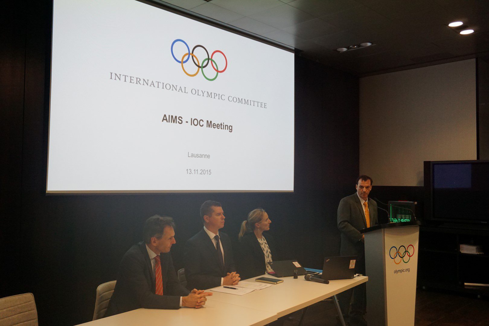 Stephan Fox, AIMS President, thanked the IOC for inviting the 23 recognised international federations to the IOC headquarter organising this historical and important meeting. He stated that it was a historical day for AIMS and all AIMS sports, a significant step towards an important relationship with the IOC and the Olympic movement. He spoke of how the cooperation between the IOC and AIMS is vital for the overall development of all sports that follow principles of good governance and ethics. Mr. Fox said that the implementation of agenda 2020 and the cooperation between AIMS and IOC is beneficial for all AIMS sports but most importantly the athletes.