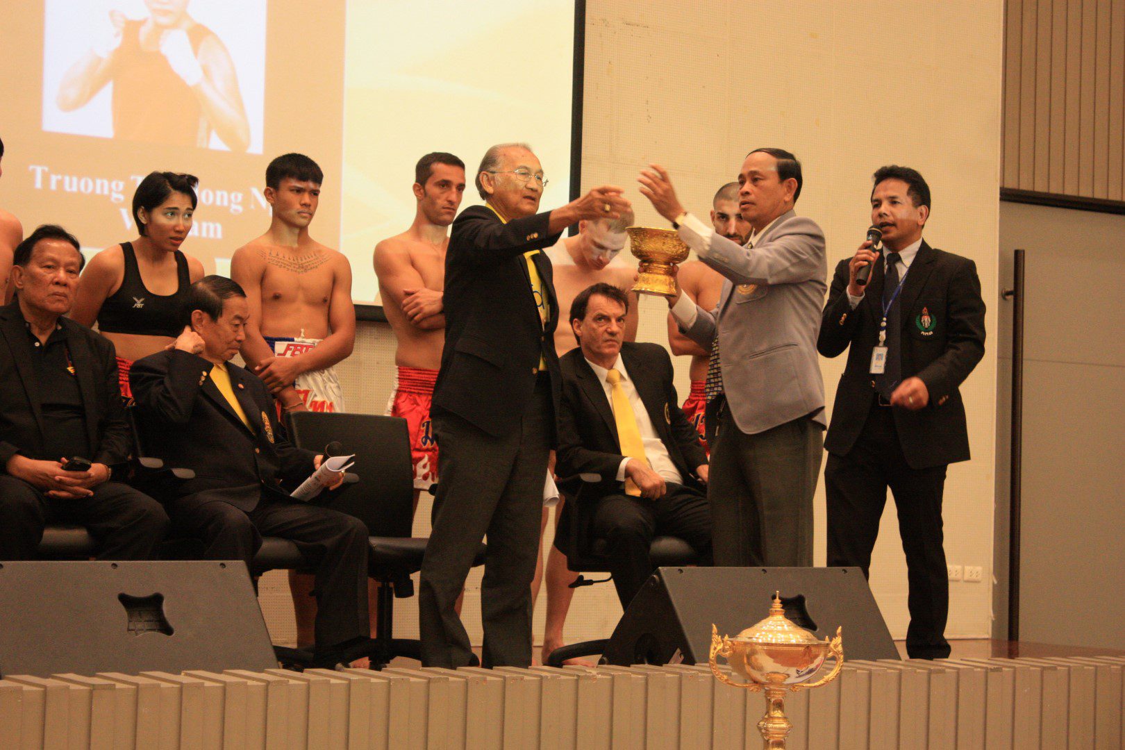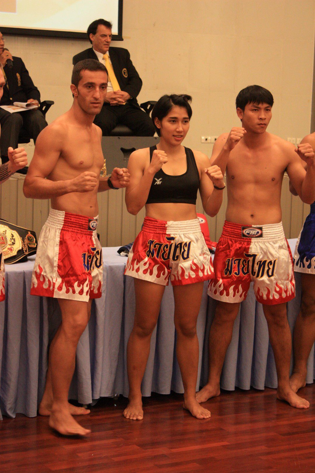 Australian champion, Sandra Brew, will compete against Truong Thi Hong Gna from Vietnam. This is a much anticipated match especially as the Oceania Olympic Committees have joined with the Olympic Committee of Asia to participate in future games organised by the Olympic Committee of Asia such as Indoor Asian and Martial Art Games. Dr. Sakchye Tapsuwan did the draw. Sue Latta, IFMA Vice President and Chair of the Women Commission stated that this is a great promotion for our campaign but also for female Muaythai and shows gender equality. 20 Years ago it would have been impossible to have these two Super 4 side by side but nowadays both Super 4 fights are equally as popular.