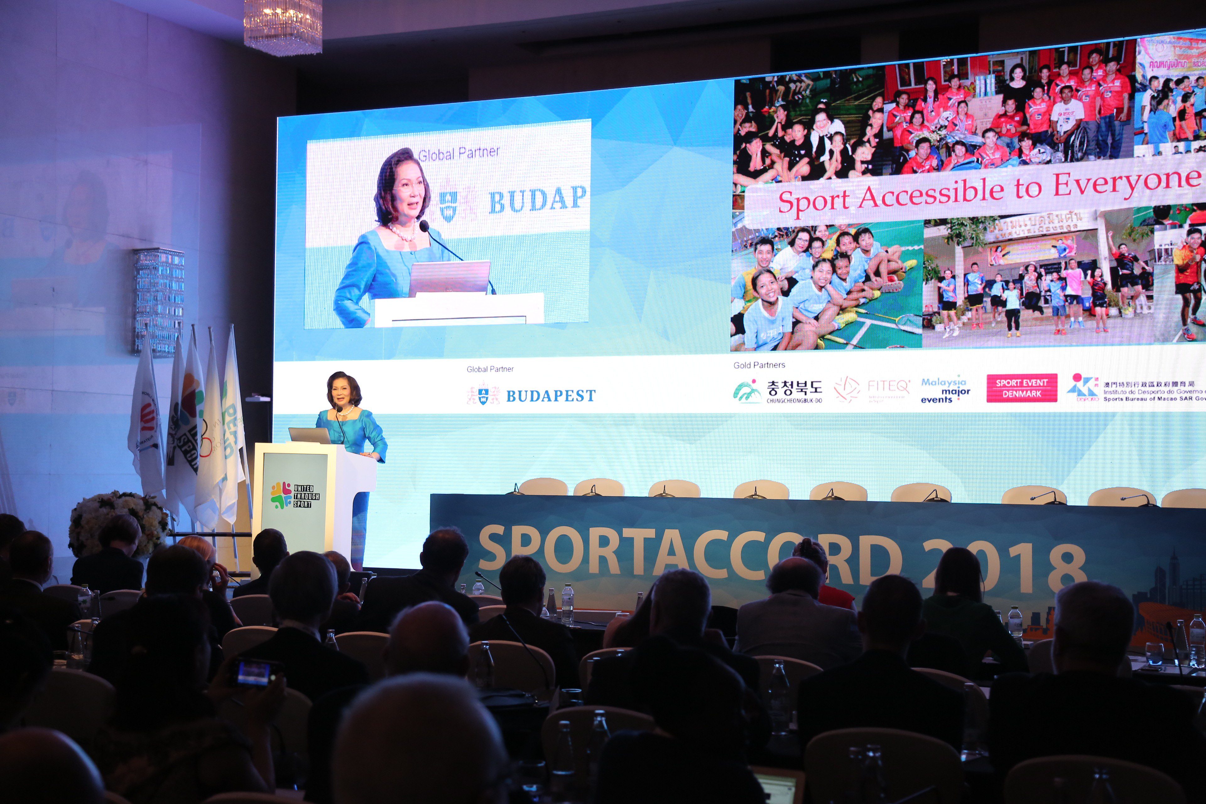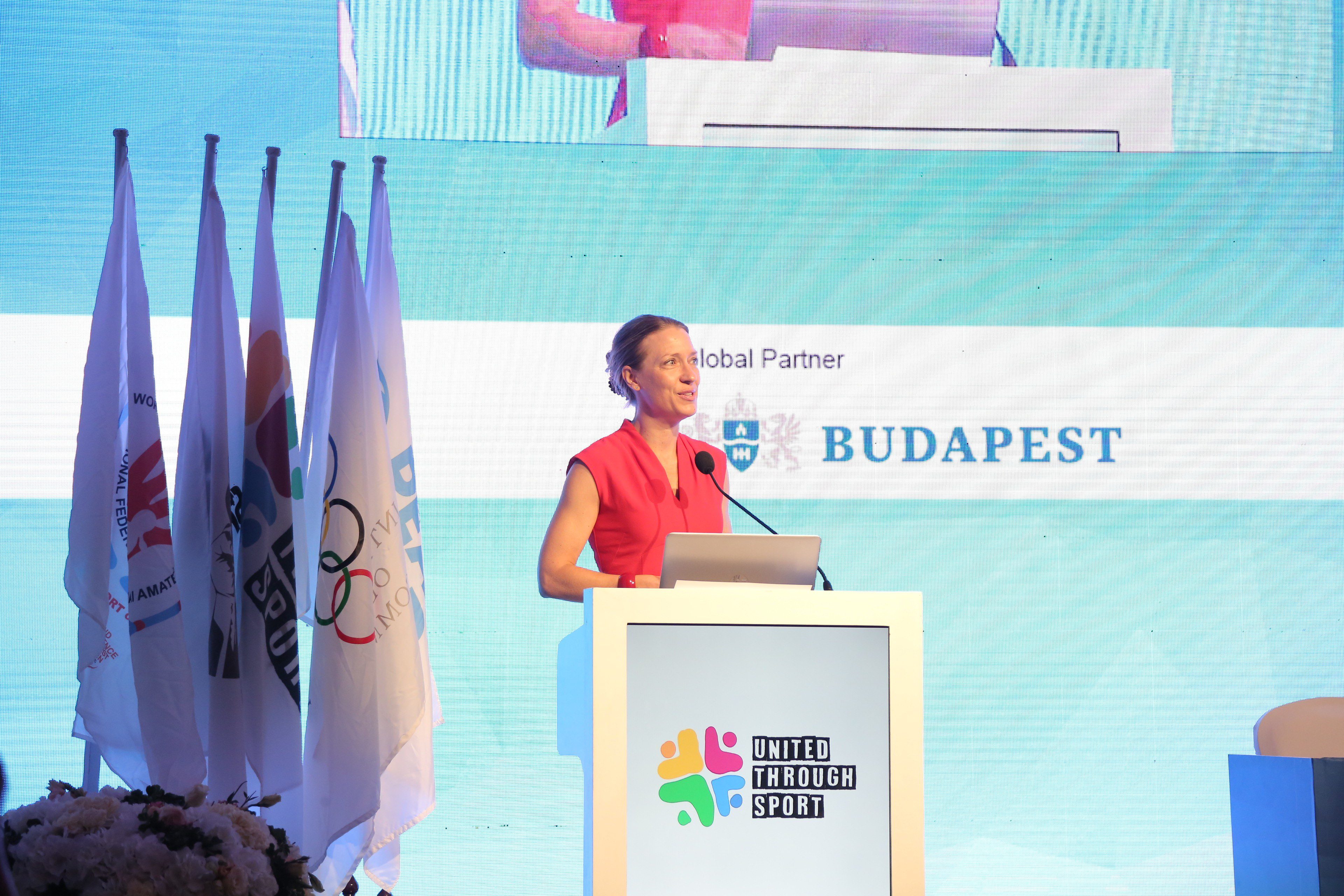 Julia Govinden delivered a highly emotional speech, showcasing the importance of forming alliances and today is a clear example of what can be accomplished if organizations unify towards our most important asset, the youth of the world. Julia then invited some of the children who were part of the opening festival to address the leaders of sport, which was not only touching but more so inspiring.