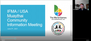 Ms. Tynan continued with a detailed report on IFMA’s preparations, the weight divisions and the final qualification processes. General Secretary Stephan Fox highlighted the importance of the World Games within the Olympic Agenda 2020 and as a multisport event. He further stated the importance that all USA Muaythai should be excited and participate as the IFMA is planning many activities during the World Games.