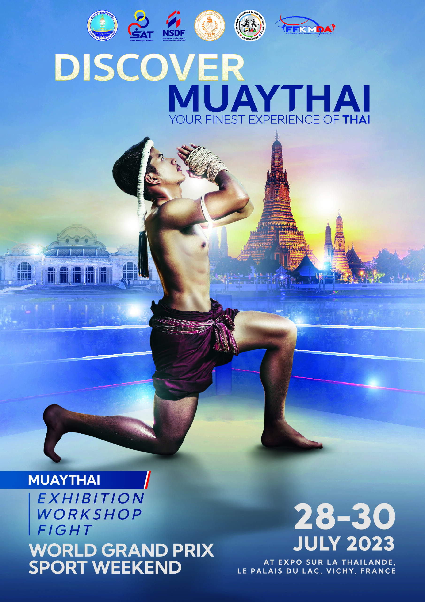 A 3-day Muaythai Exhibition Workshop and fight night built up as the World Grand Prix will be held at Le Palace Du Lac in Vichy, France jointly organized by the Royal Thai government, the Sport Authority of Thailand, the NSDF, the Boxing Board and certainly the Ministry of Tourism and Sport and the world governing body recognized by the International Olympic Committee (IOC), IFMA, and FFKMDA, the sole national federation of France recognized by the National Olympic Committee (NOC) and the French Ministry of Sport.