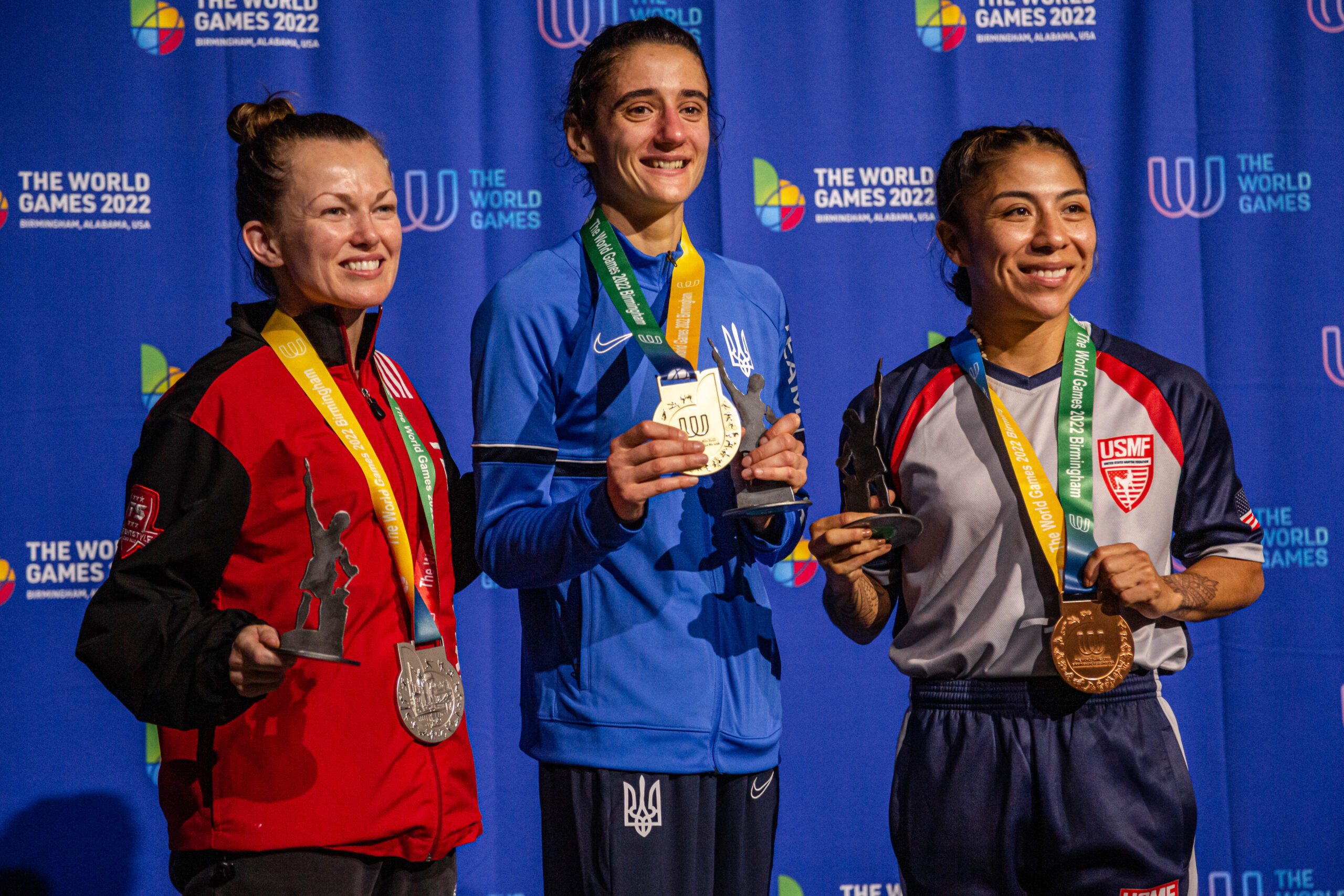 In the 60 KG division it was former world champion Nili Block from Israel and silver medalist of the 2017 World Games against Charlsey Maner from the USA. It was an extremely close match between the two athletes but it was Charlsey improving from contest to contest and who put in the performance of a lifetime to beat Nili Block bringing the first gold medal of the World Games to the United States with a standing ovation from the entire stadium. Ajsa Adel Sandorfi from Hungary won the bronze medal.