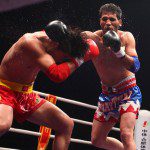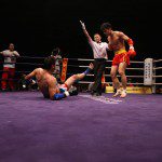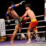 The first fight of the evening was the 63KG bout between China’s Zhang Jun Yong VS Thailand’s Jomthong. Jomthong came out with iron leg kicks which proved to be more than the local China opponent could handle ending in a heart stopping KO. The home crowd showed their moral support for their local boy as they applauded him upon his departure from the stadium.